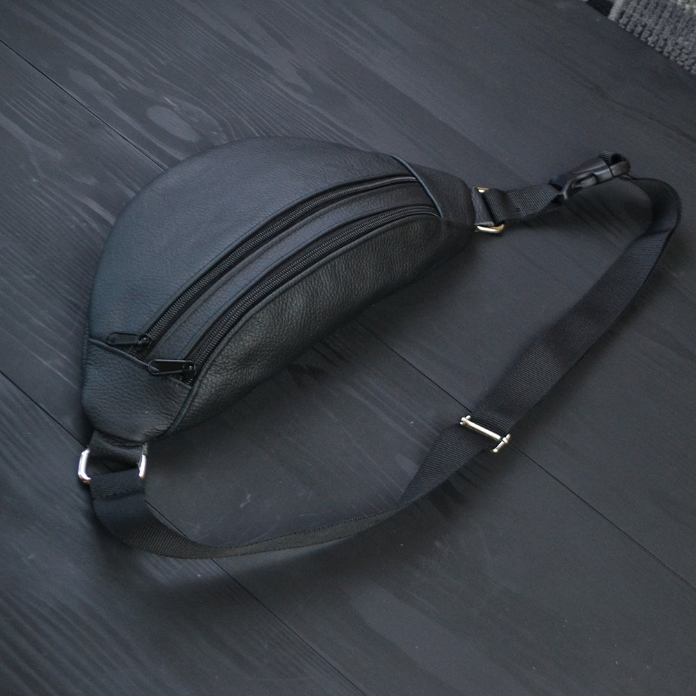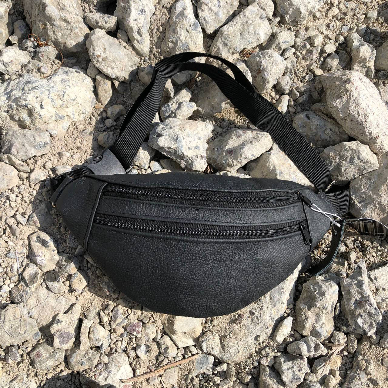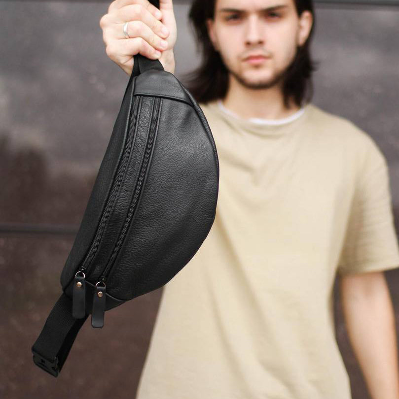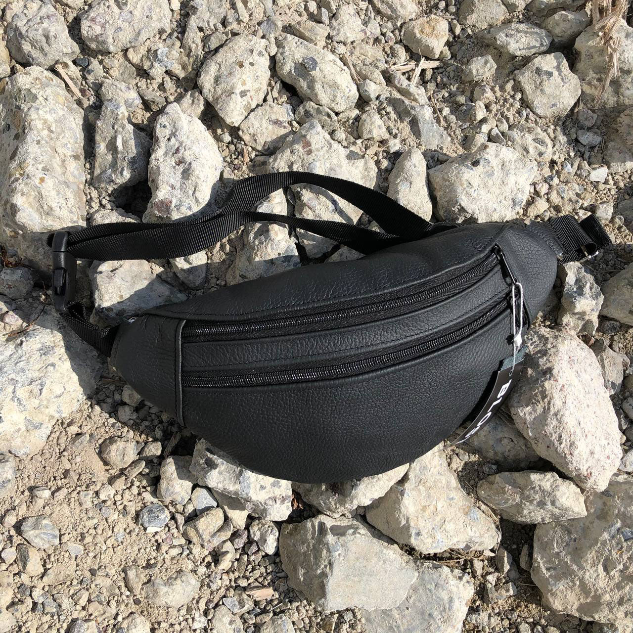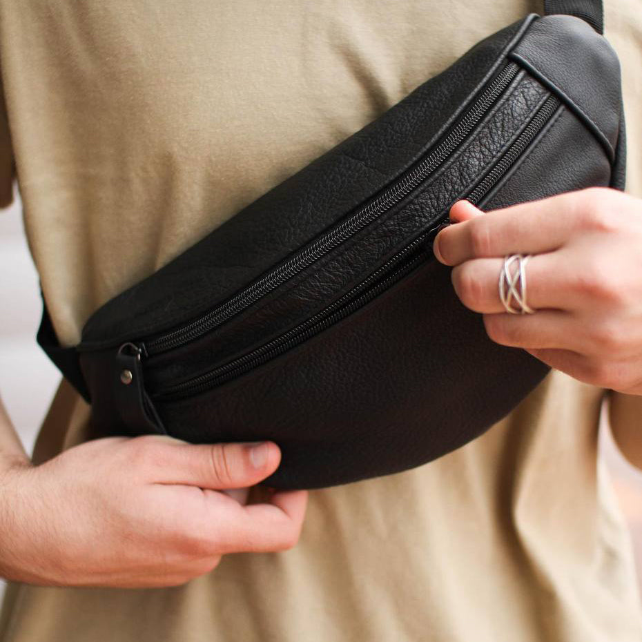Бананка из натуральной кожи, сумка мужская-женская барсетка черная сумочка