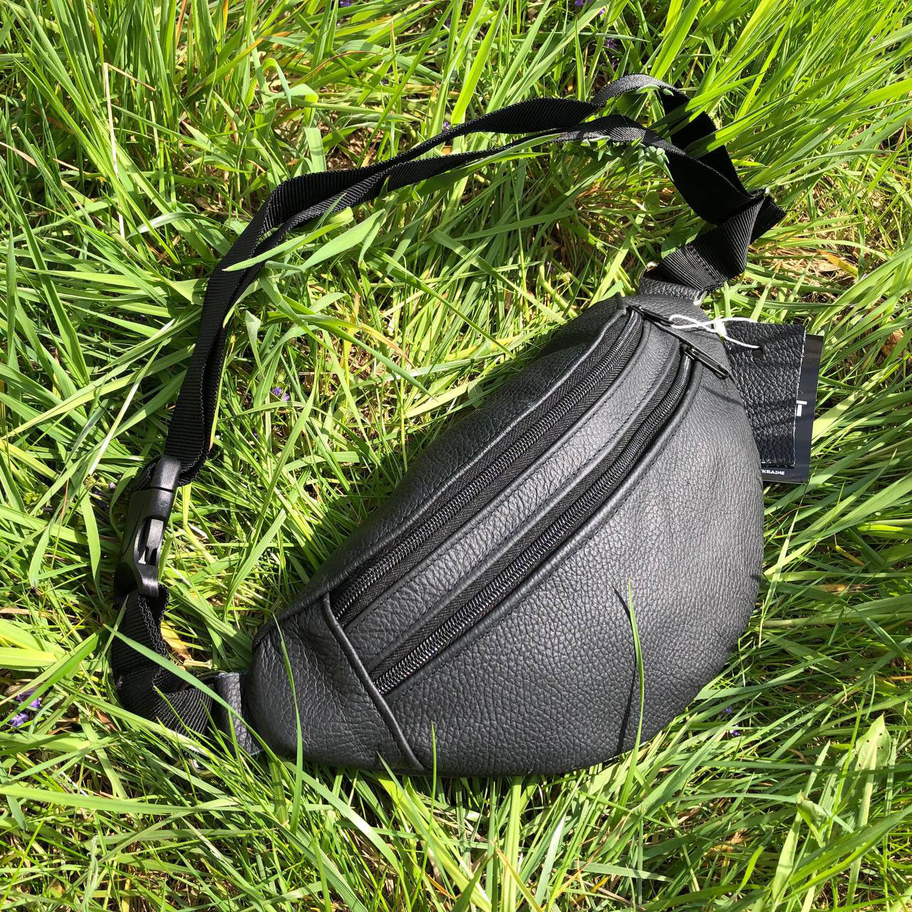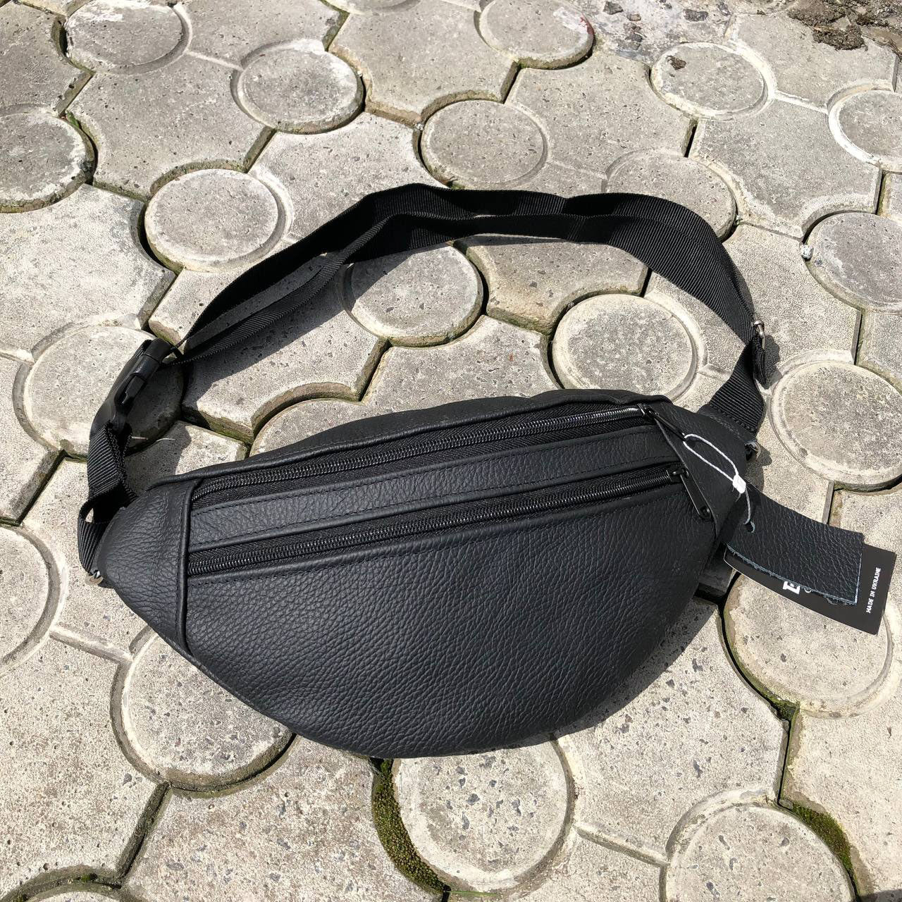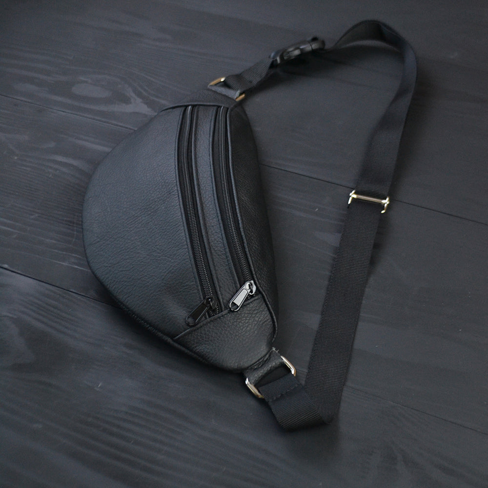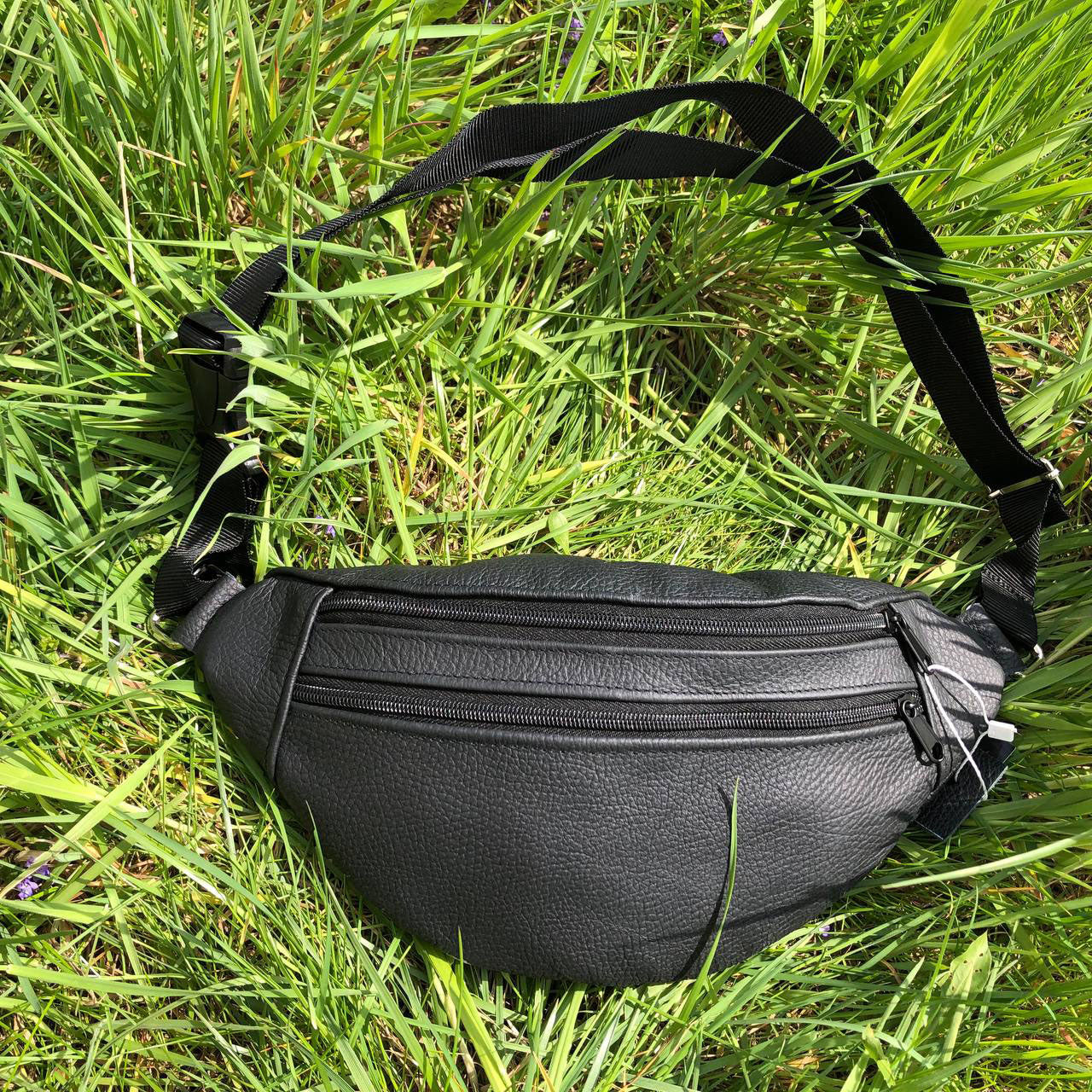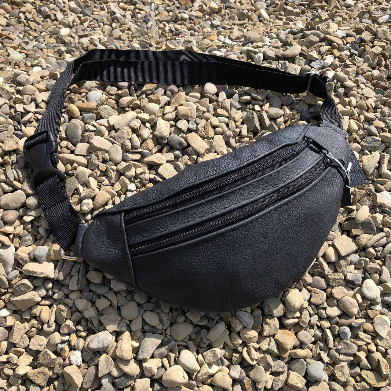 Бананка из натуральной кожи, сумка мужская-женская барсетка черная сумочка