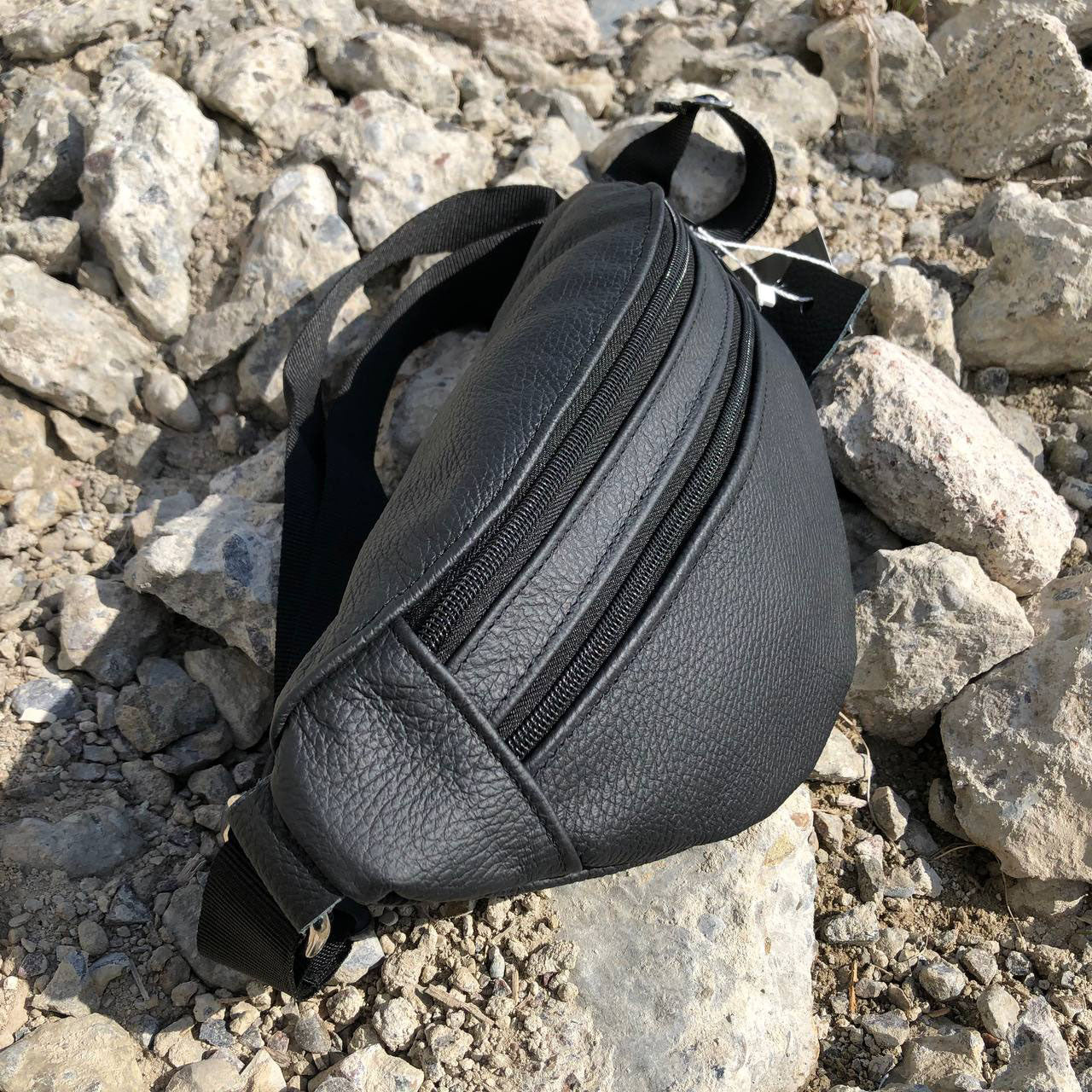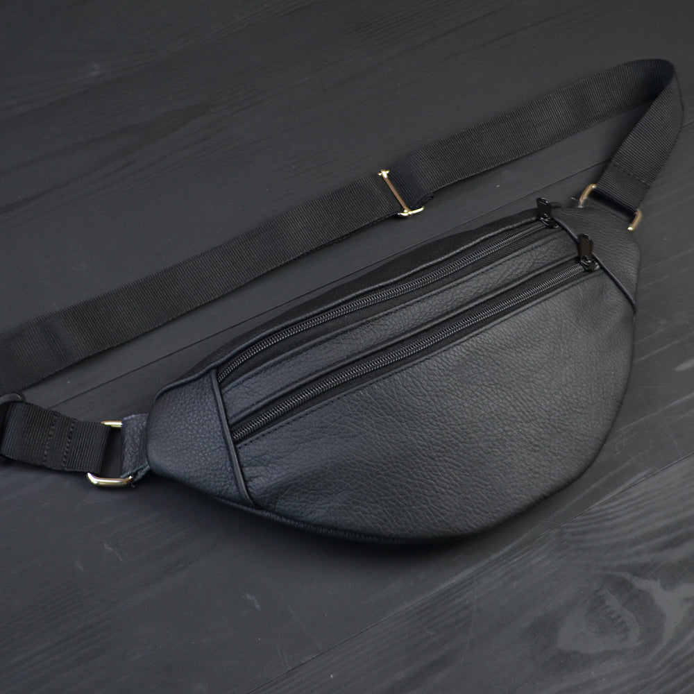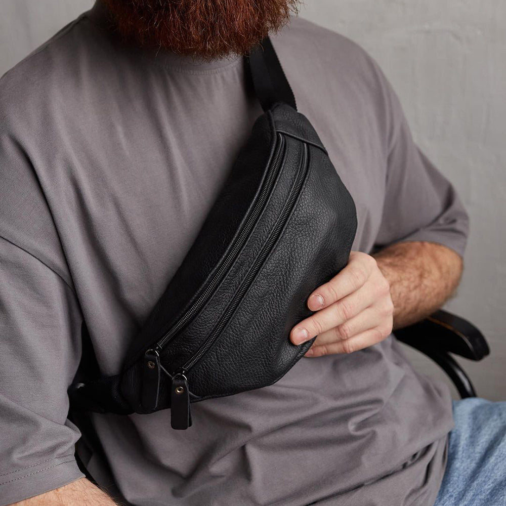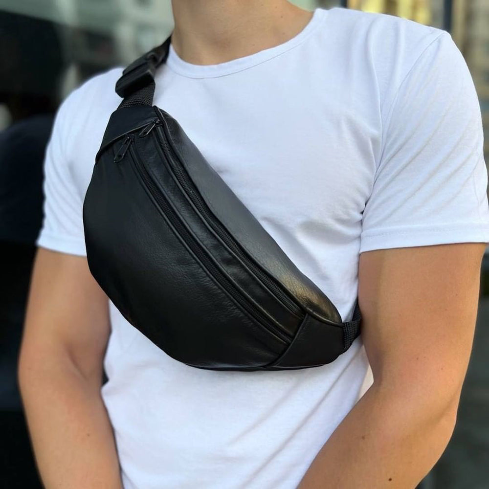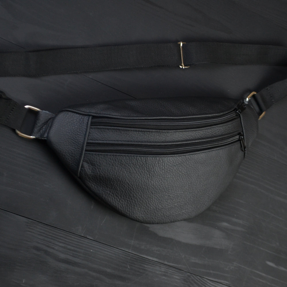 Бананка из натуральной кожи, сумка мужская-женская барсетка черная сумочка