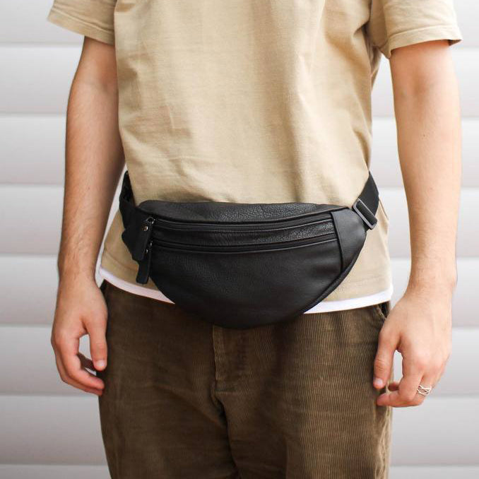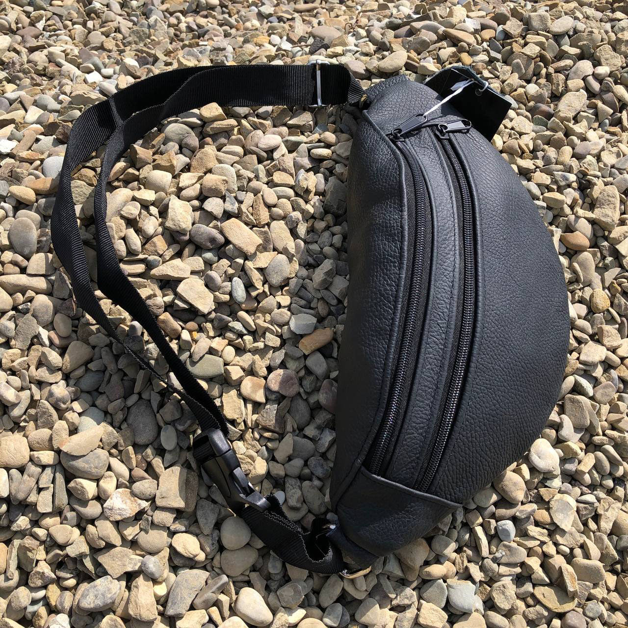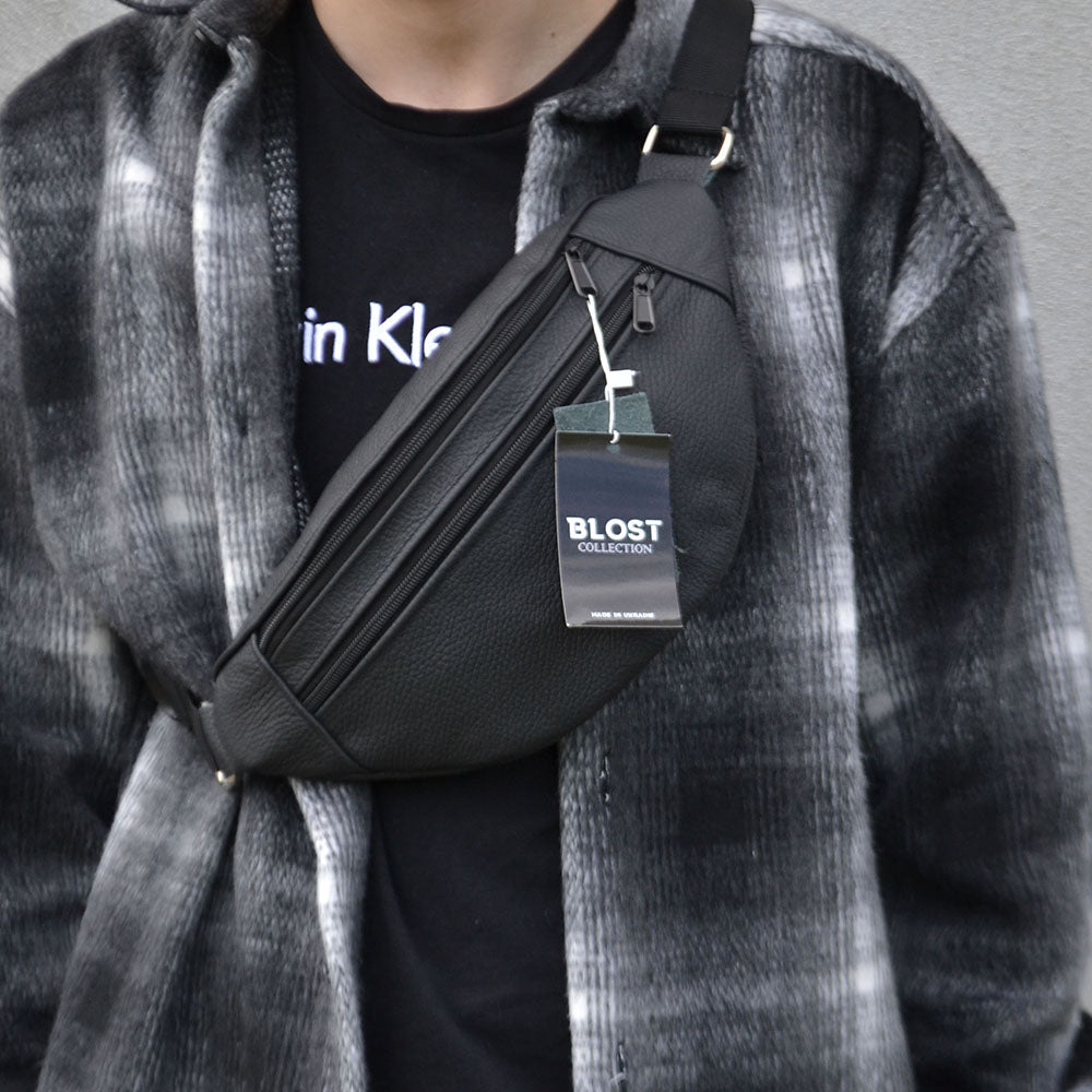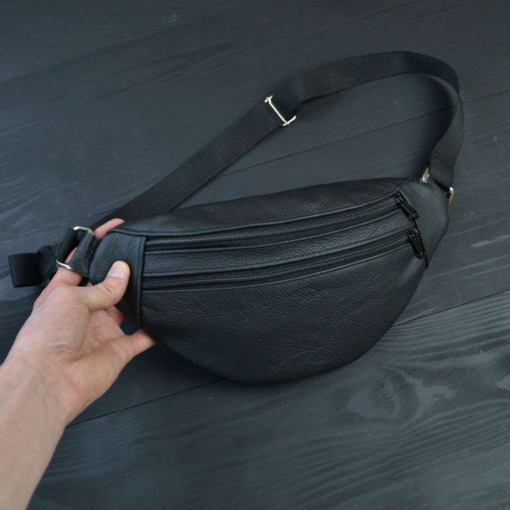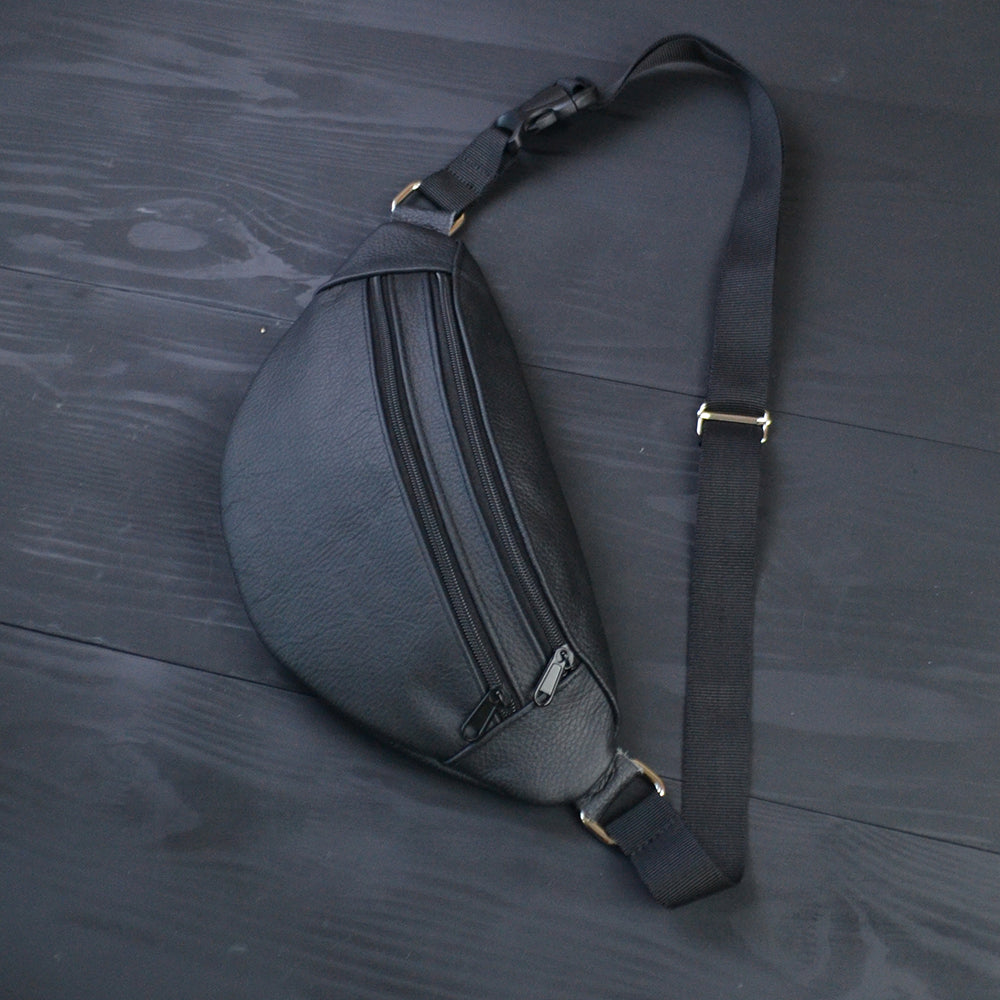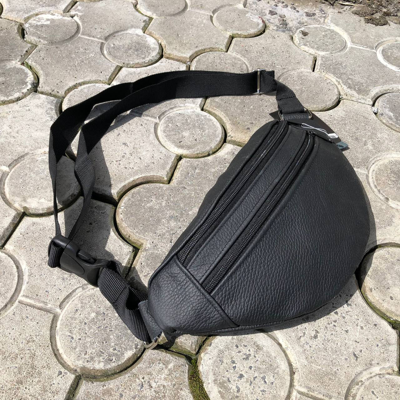 Бананка из натуральной кожи, сумка мужская-женская барсетка черная сумочка