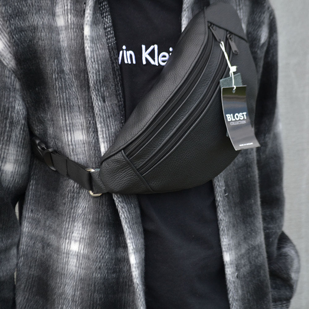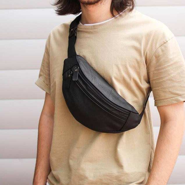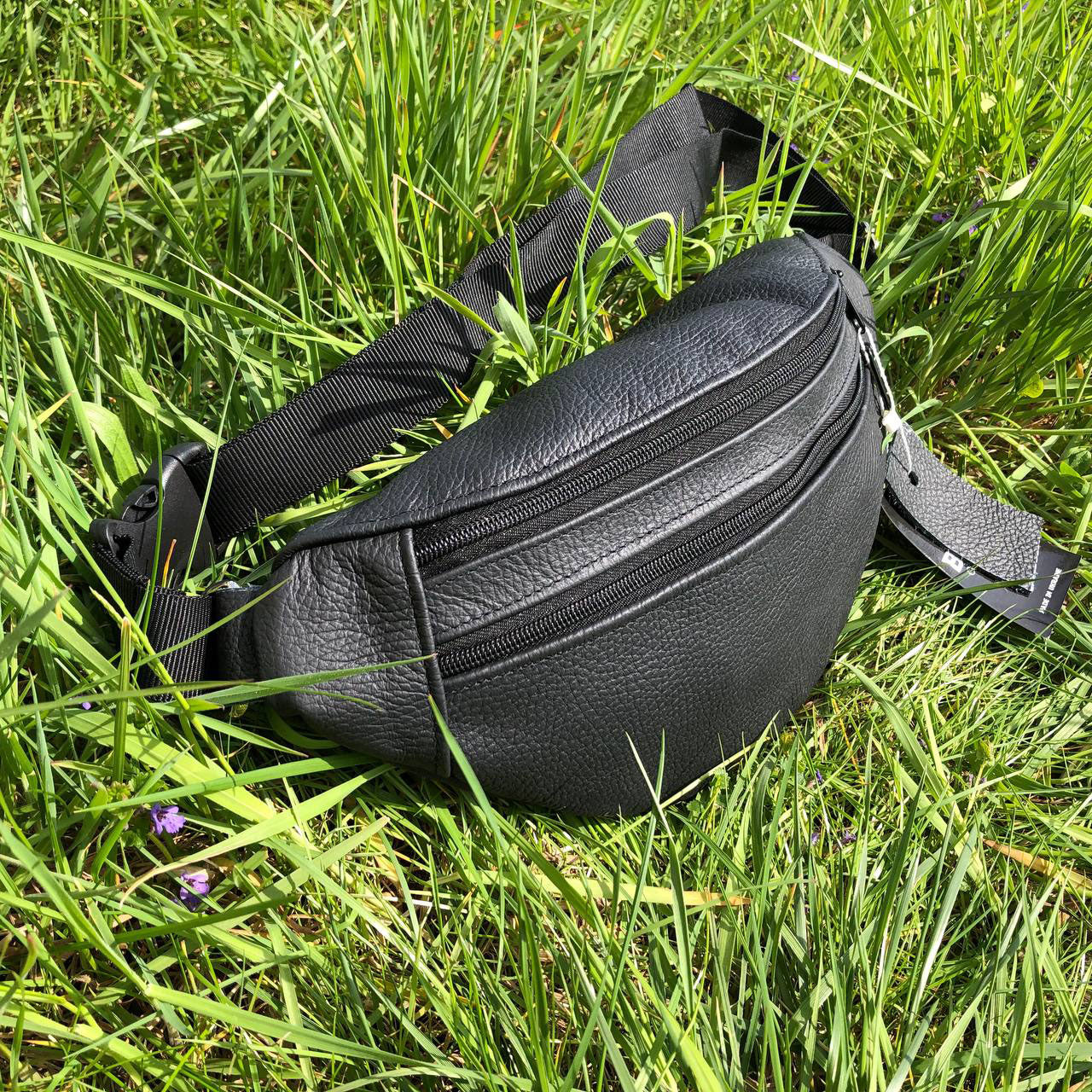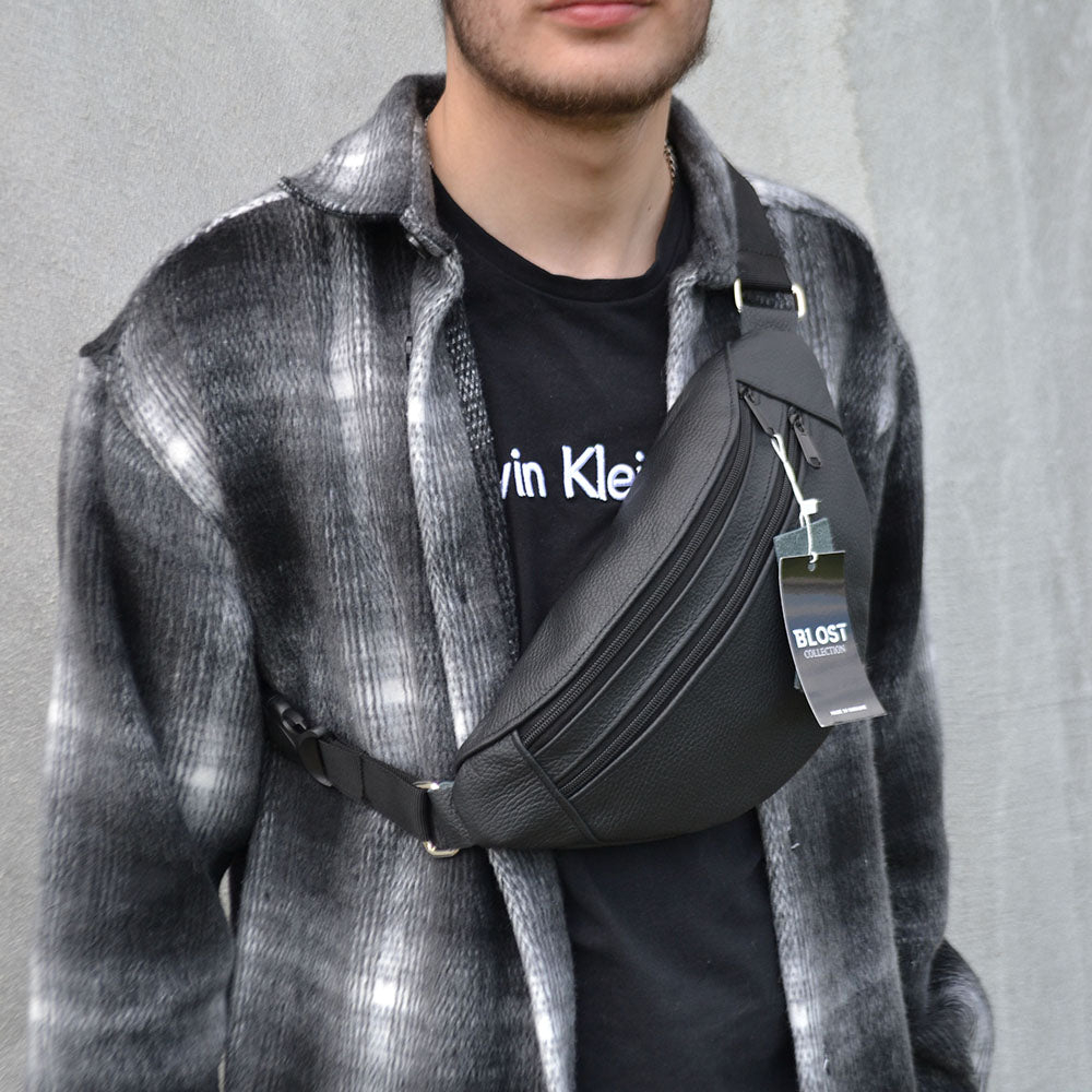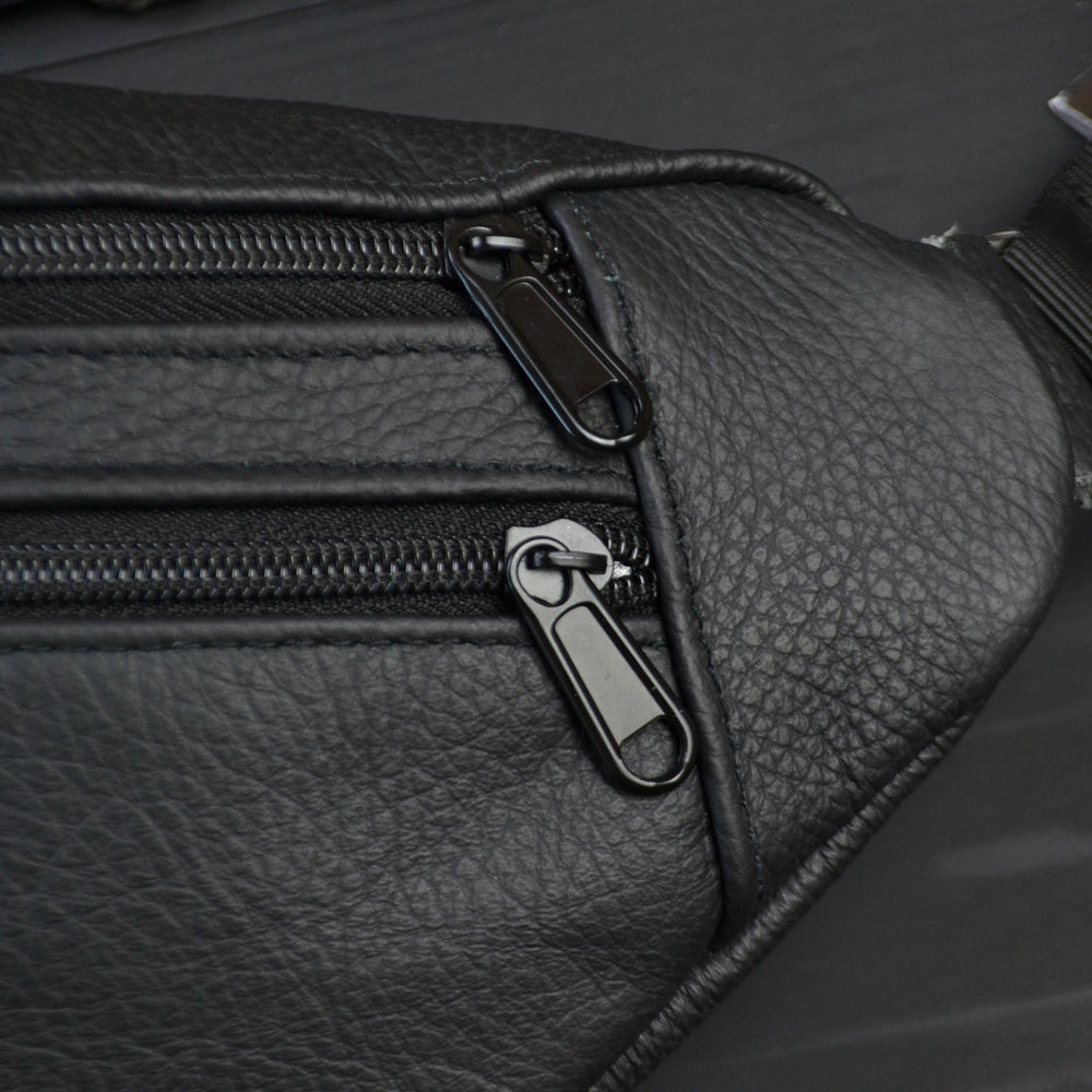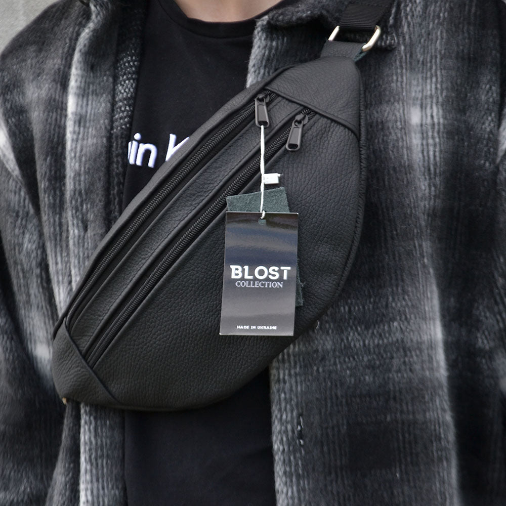 Бананка из натуральной кожи, сумка мужская-женская барсетка черная сумочка