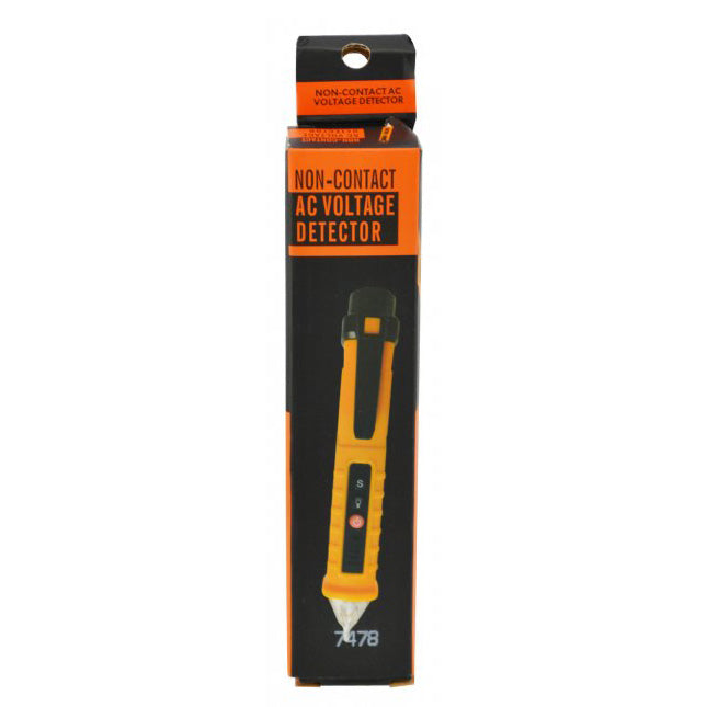 Детектор напряжения Non-Contact Detector 7478 помогает найти напряжение переменного тока в розетках, удлинителях, выключателях, распределительных коробках и кабелях бесконтактным способом в двух диапазонах 12-1000 В и 48-1000 В. Миниатюрный и простой в обращении прибор, сигнализирующий о наличии напряжения, в зависимости от уровня сигнала, ярким светом. Имеет функцию автоматического отключения и отключается после 3-х минут бездействия. Оснащен специальной клипсой, позволяющей крепить тестер напряжения на карман и встроенным фонариком, благодаря чему может быть применен для работы в плохо освещенных помещениях.