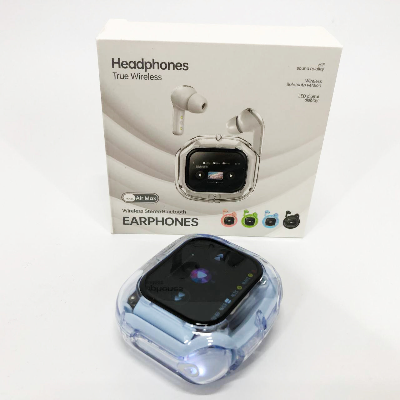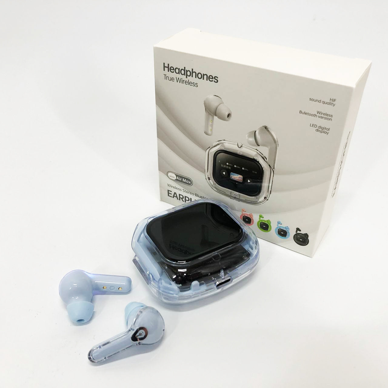 Беспроводные вакуумные наушники TWS с LED дисплеем, влагозащита IPx4 Bluetooth 5.4 с кейсом. Цвет: голубой