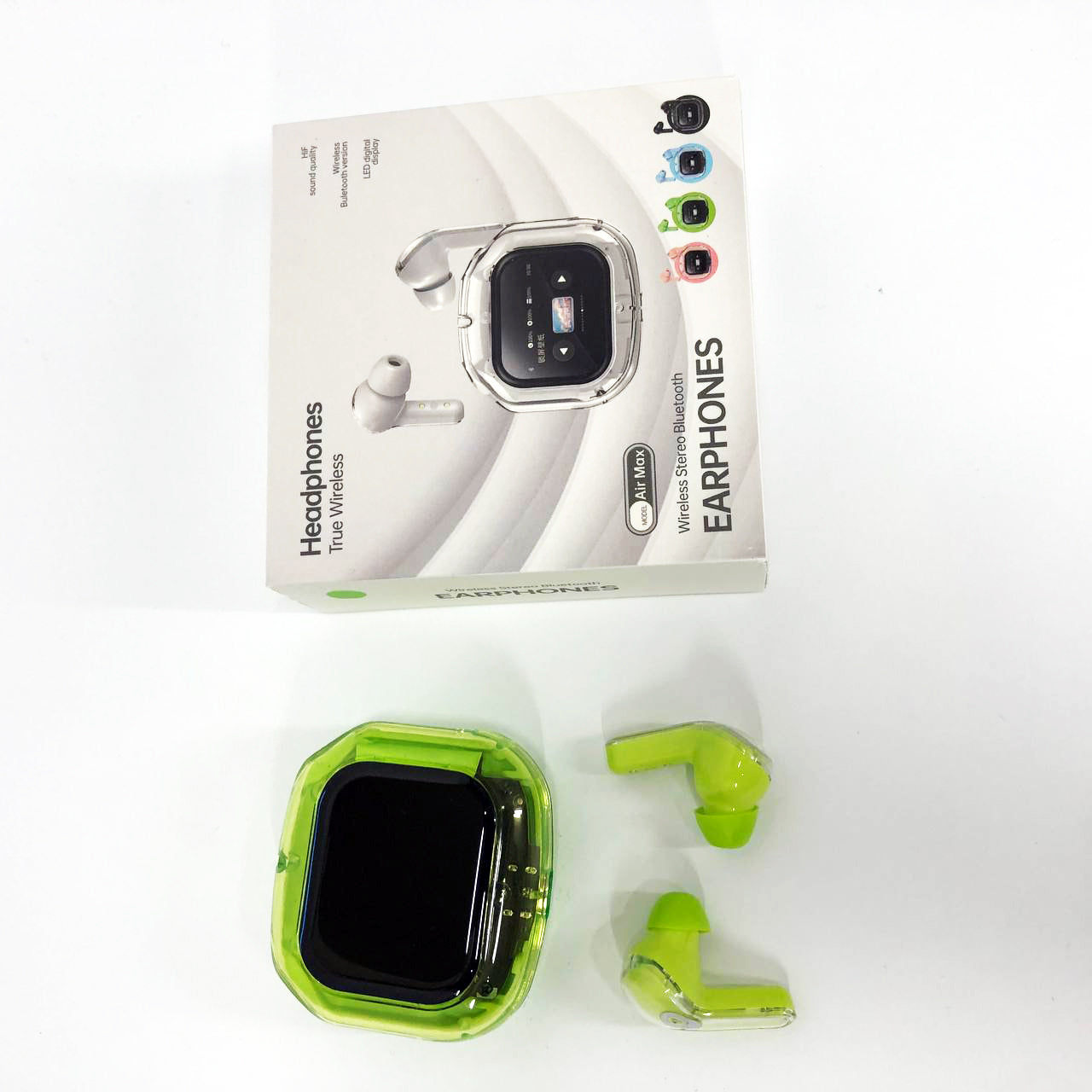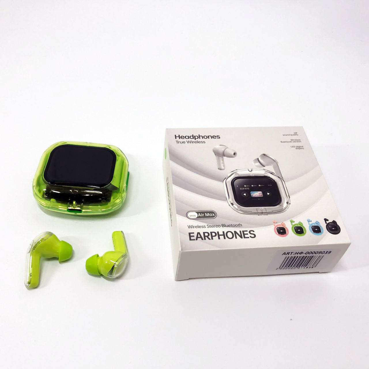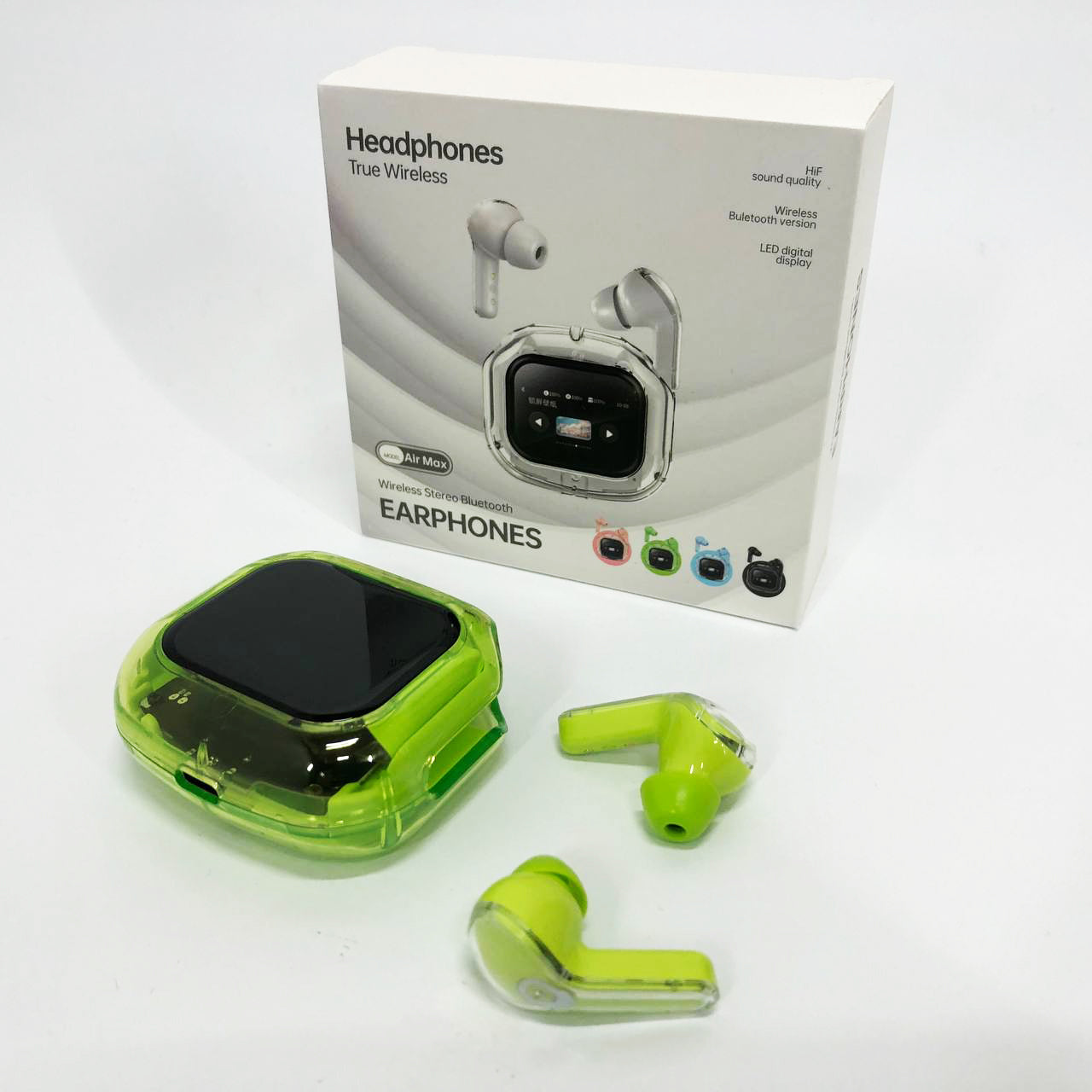 Беспроводные вакуумные наушники TWS с LED дисплеем, влагозащита IPx4 Bluetooth 5.4 с кейсом. Цвет: зеленый