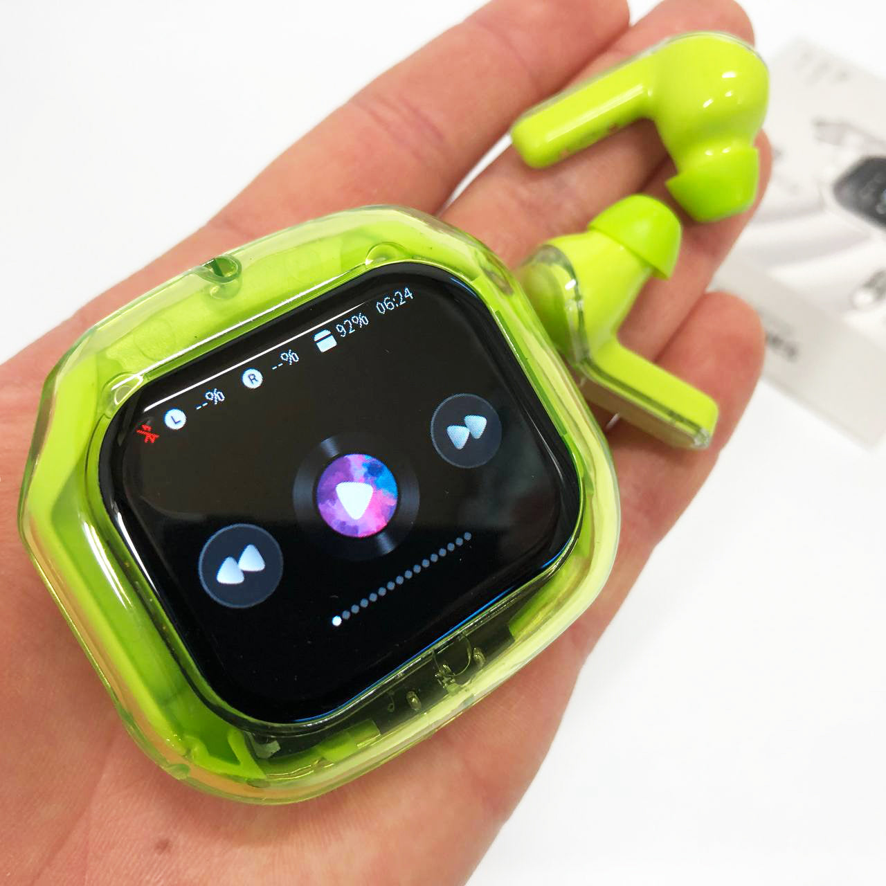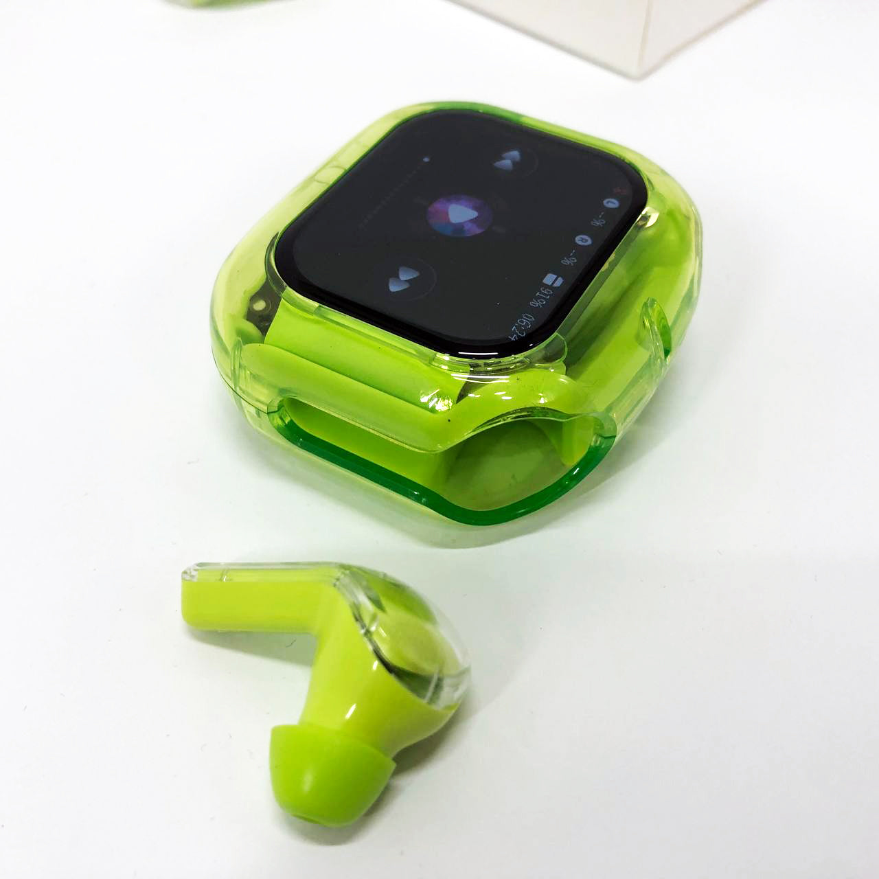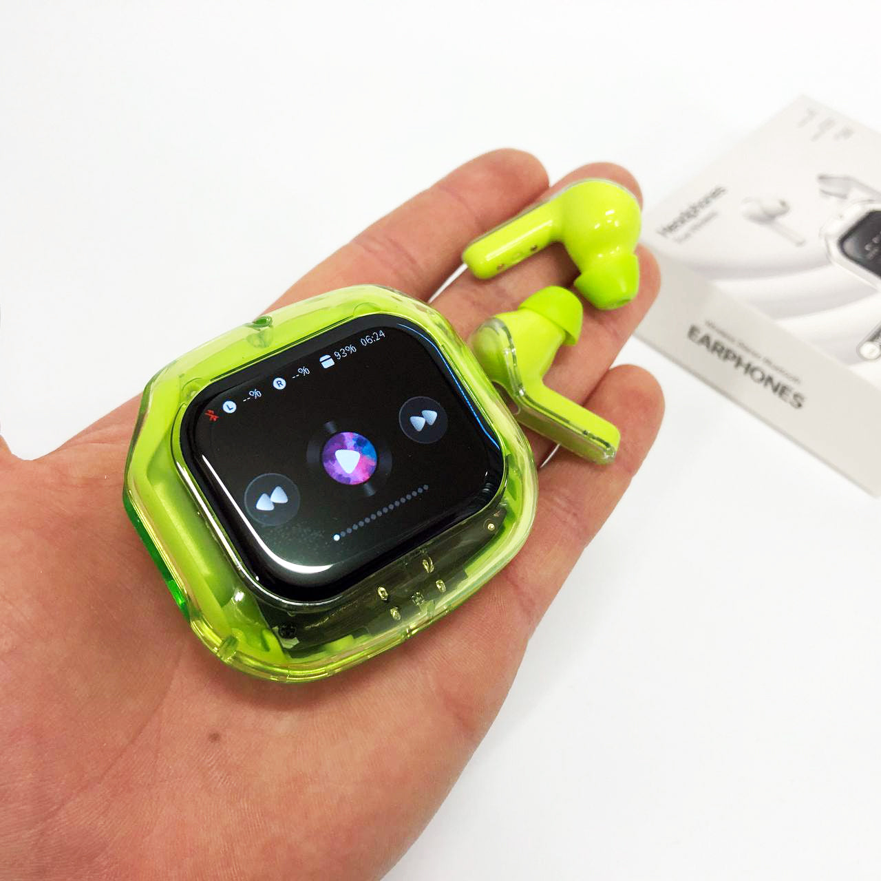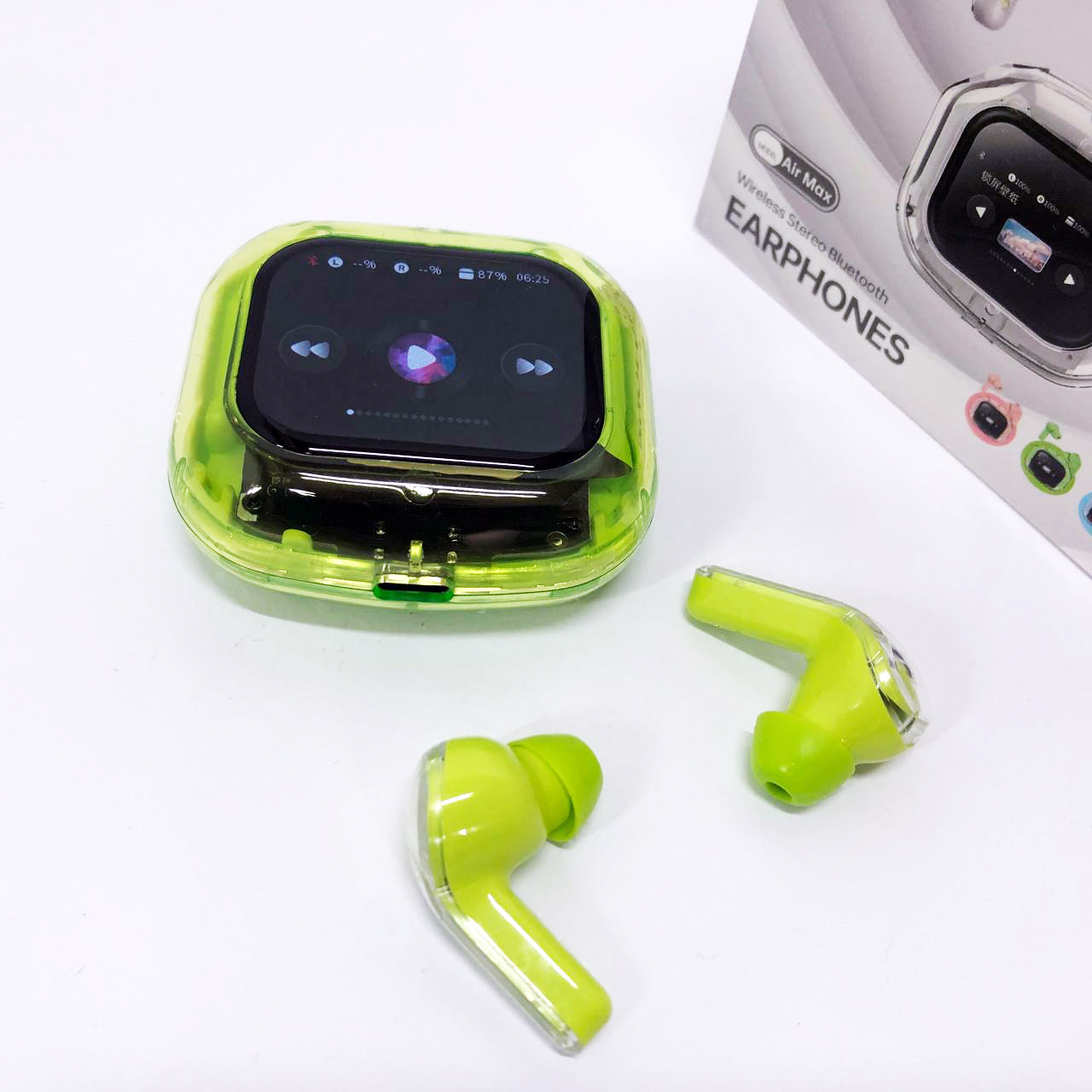 Беспроводные вакуумные наушники TWS с LED дисплеем, влагозащита IPx4 Bluetooth 5.4 с кейсом. Цвет: зеленый