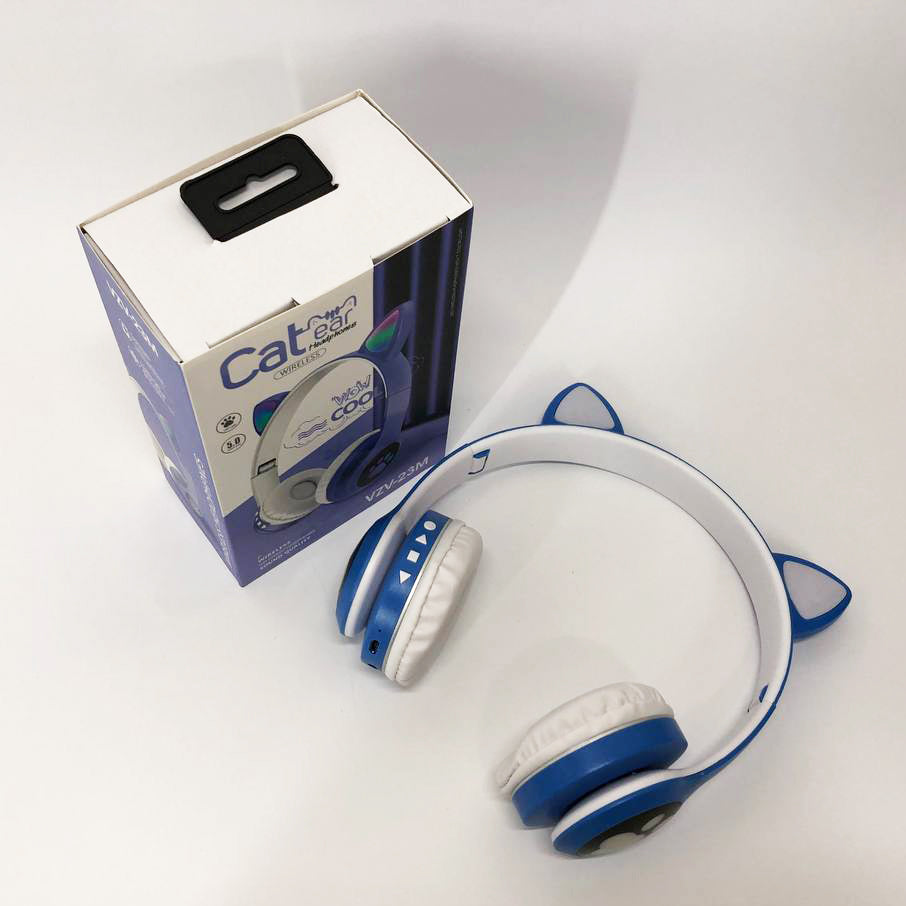 Беспроводные наушники с кошачьими ушками и RGB подсветкой Cat VZV 23M. Цвет: синий