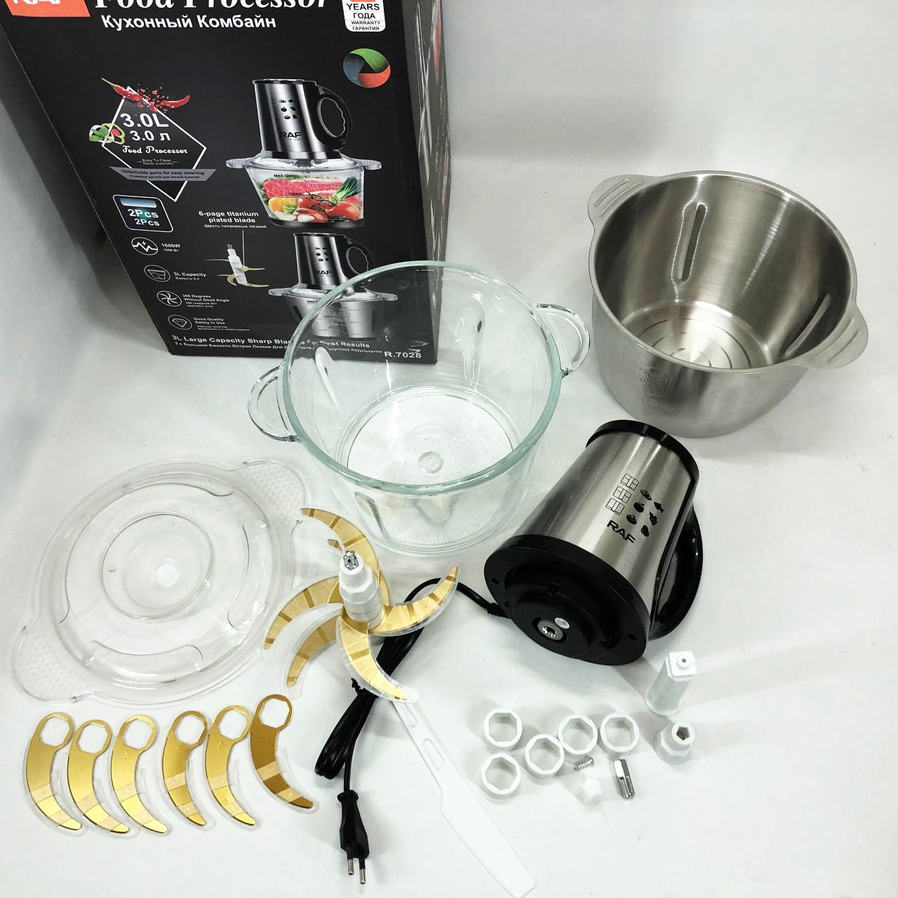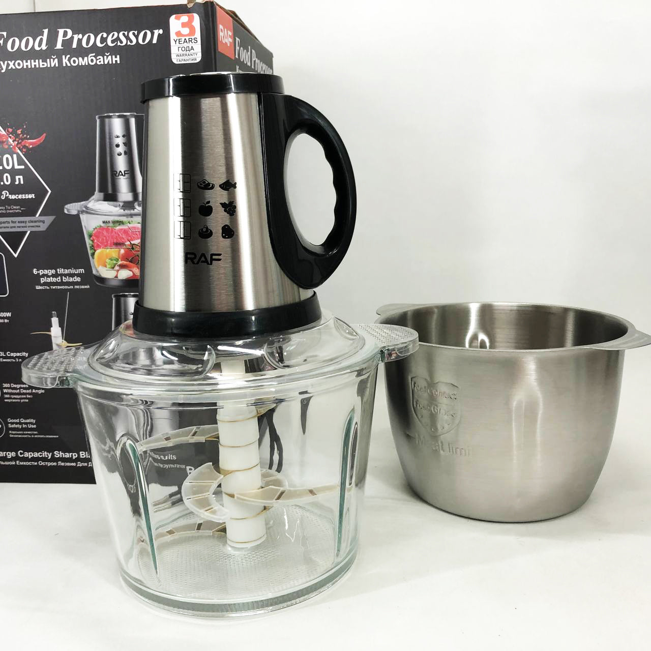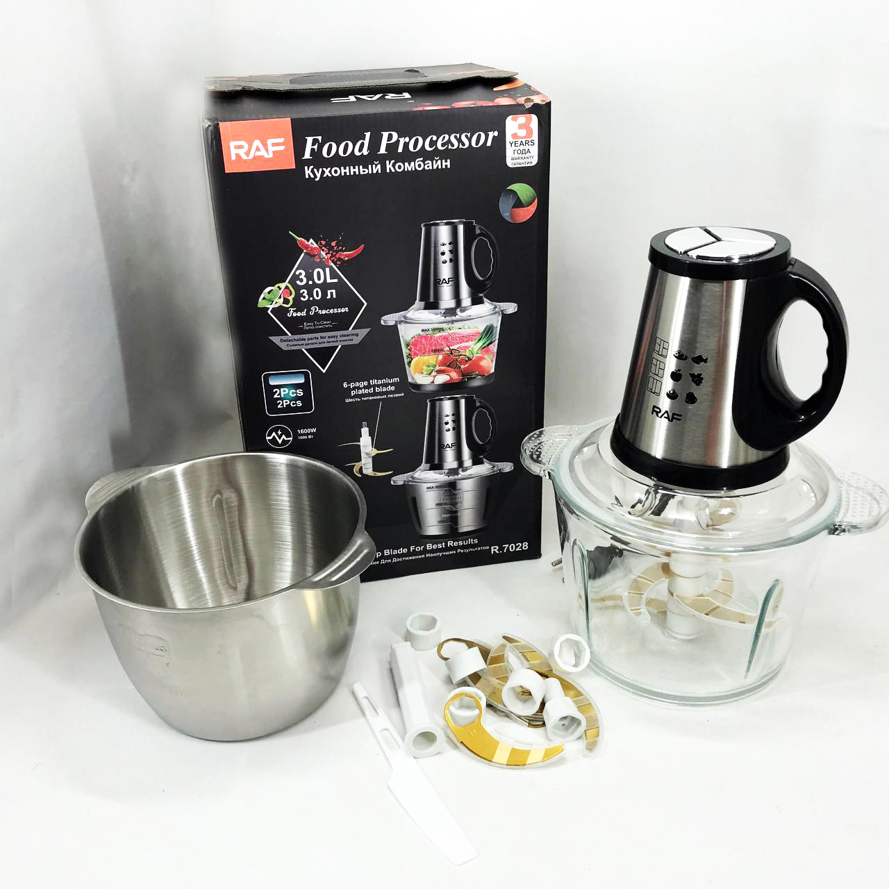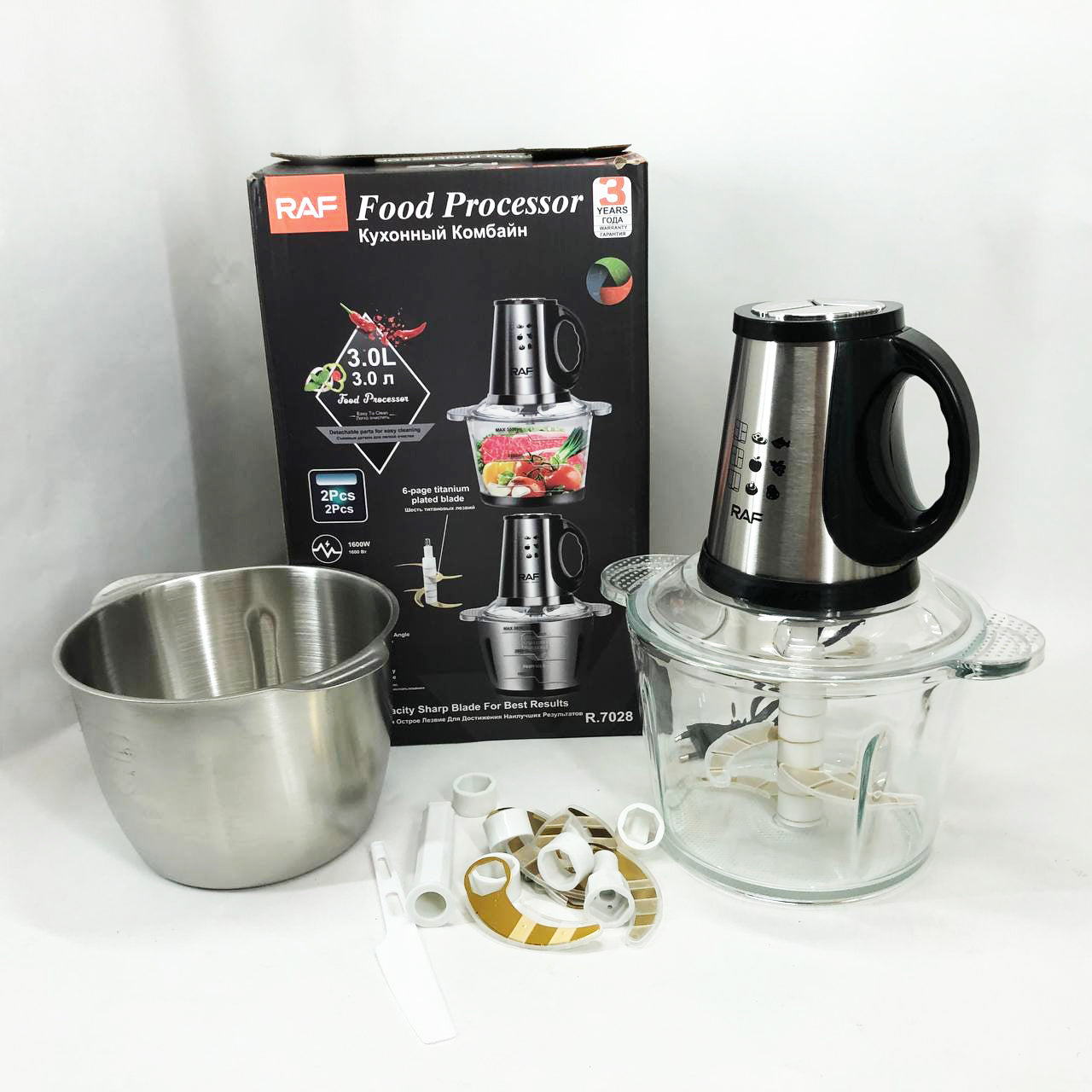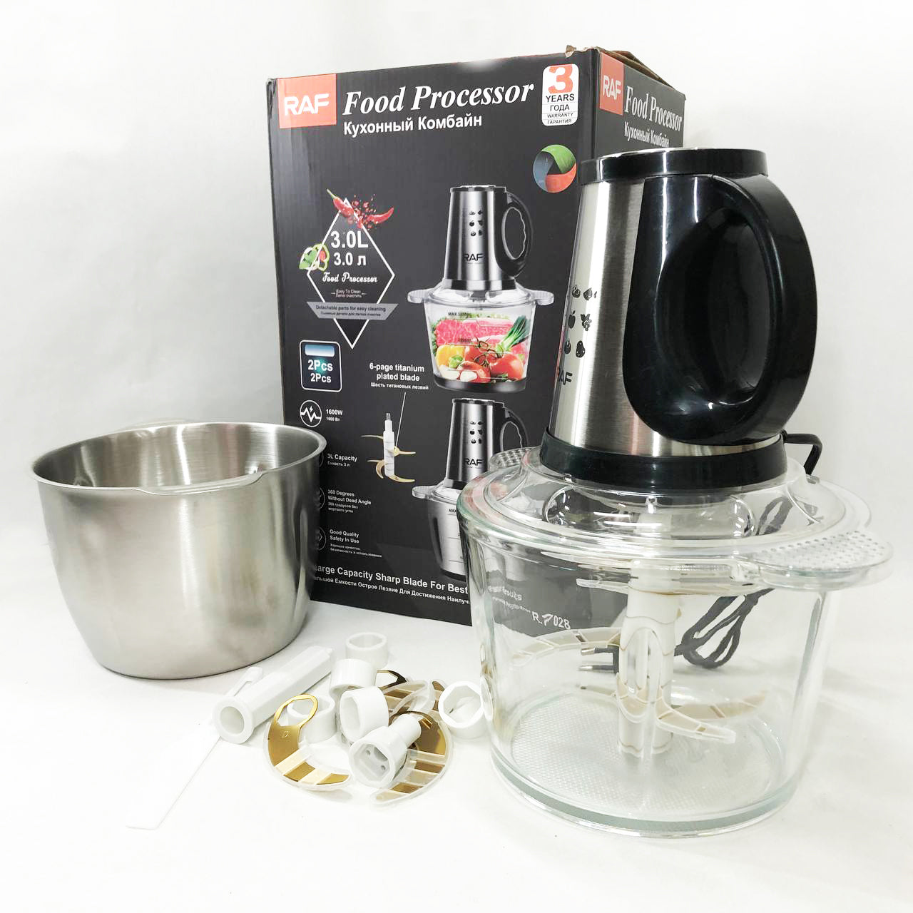 Блендер-измельчитель RAF R.7028 2 в 1, 300 Вт, 2 чаши, Бытовой мощный измельчитель продуктов