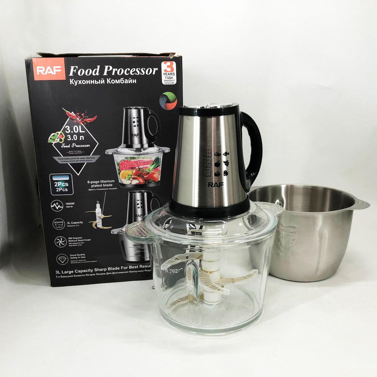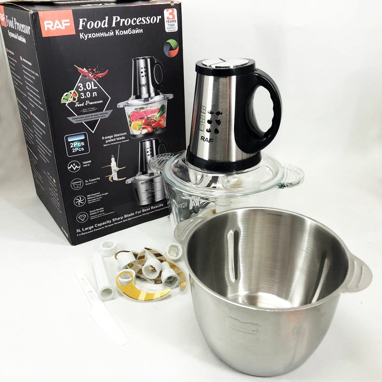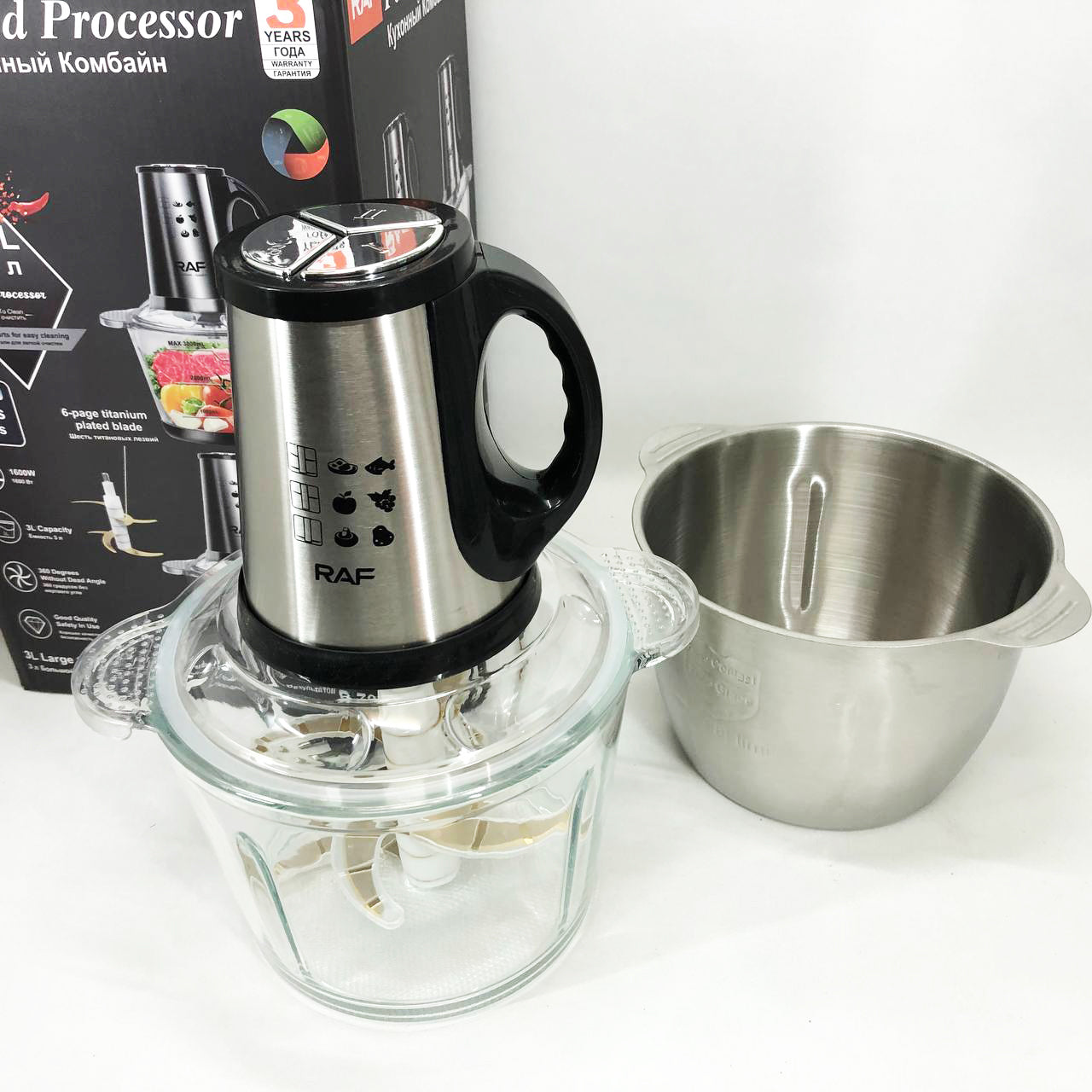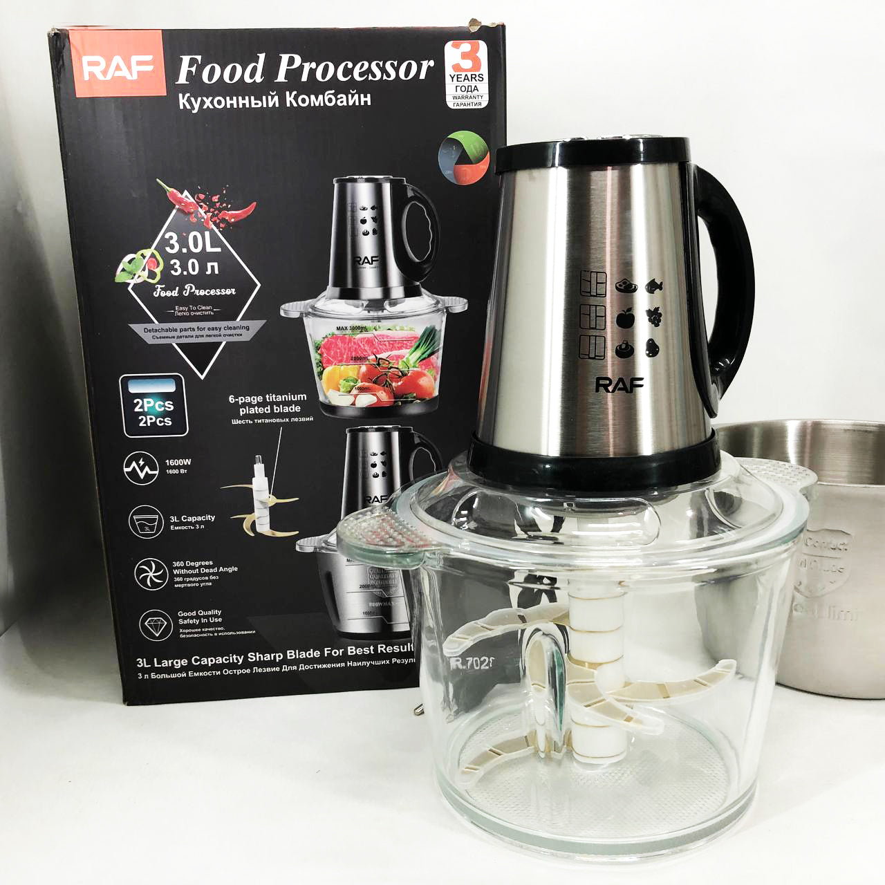 Блендер-измельчитель RAF R.7028 2 в 1, 300 Вт, 2 чаши, Бытовой мощный измельчитель продуктов