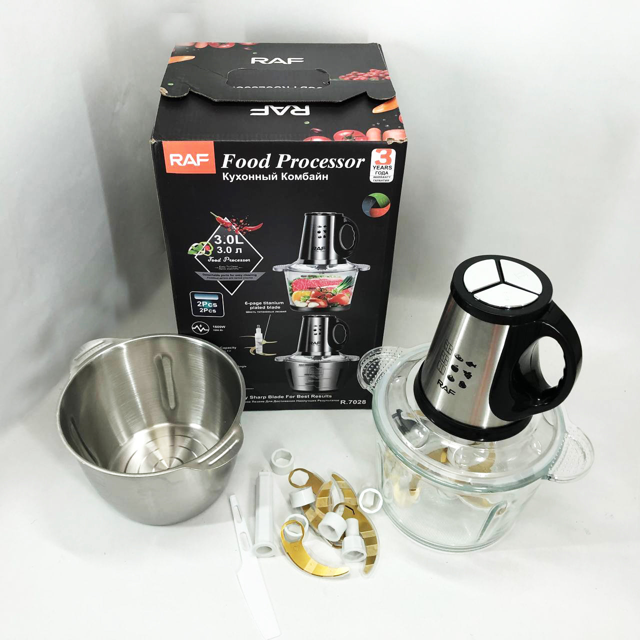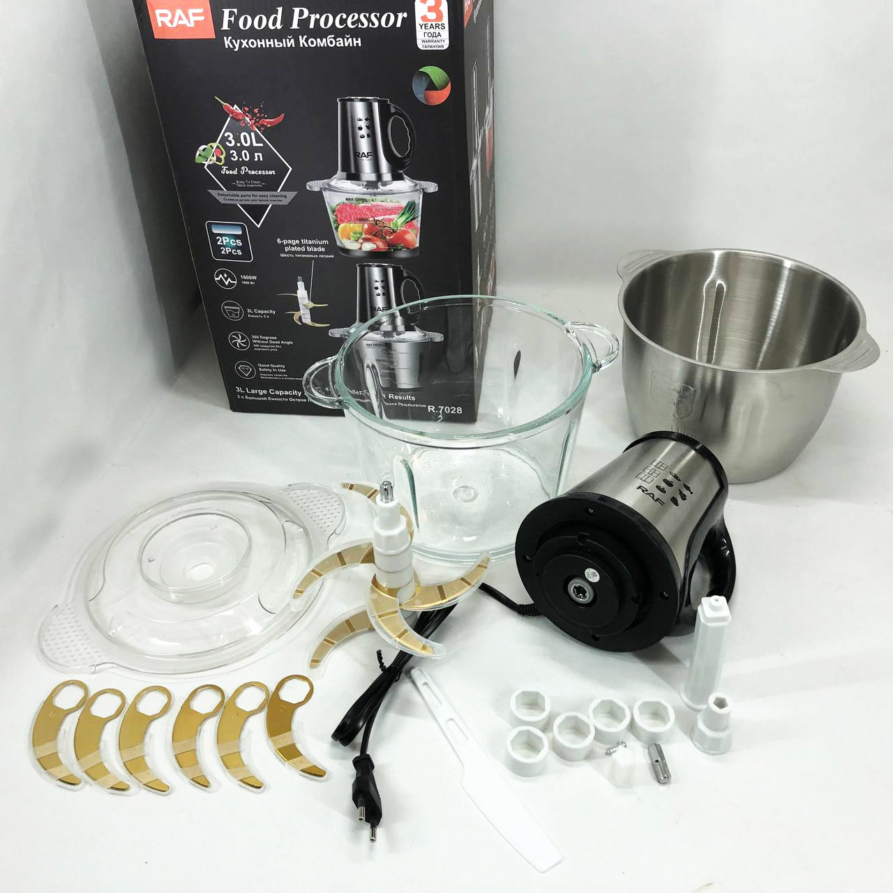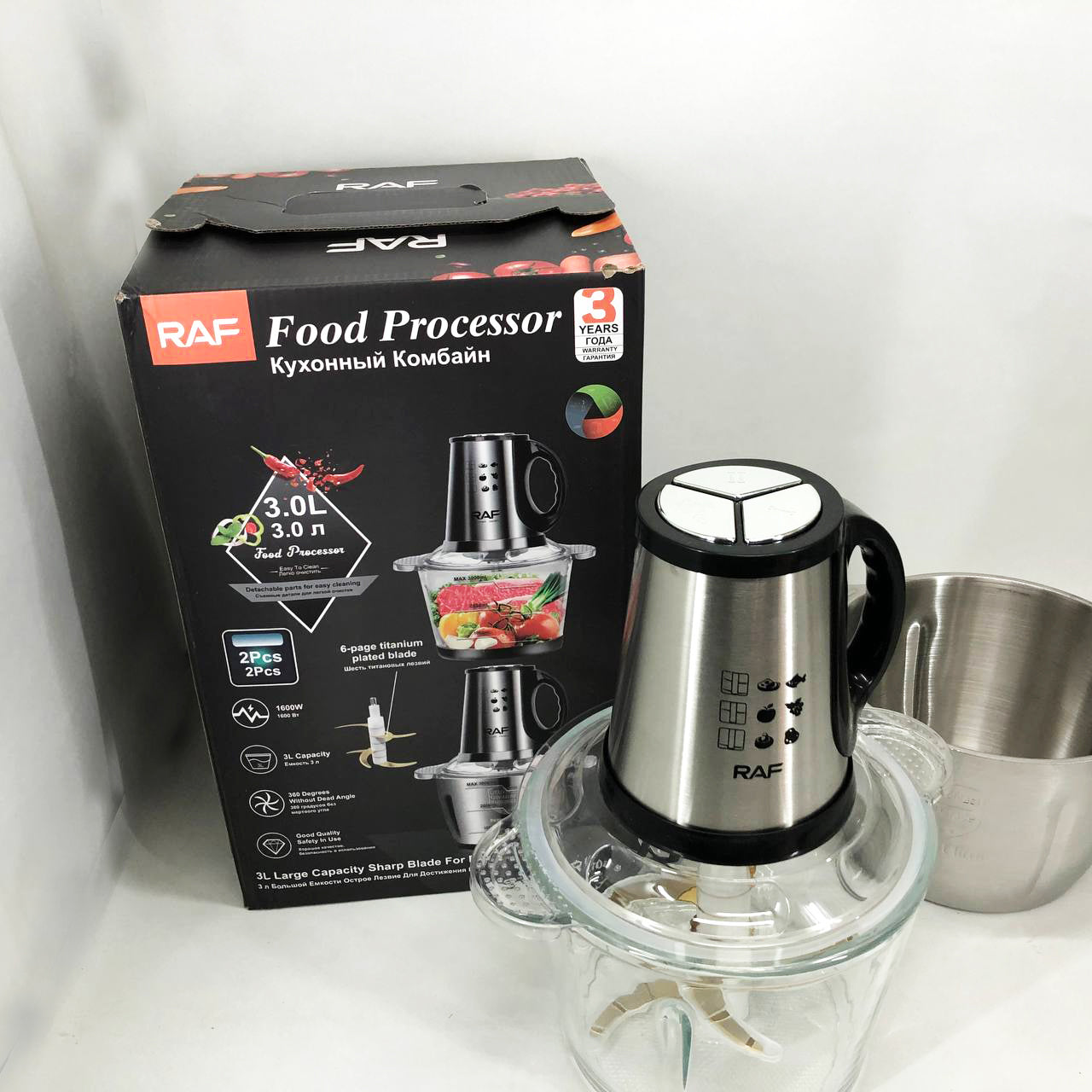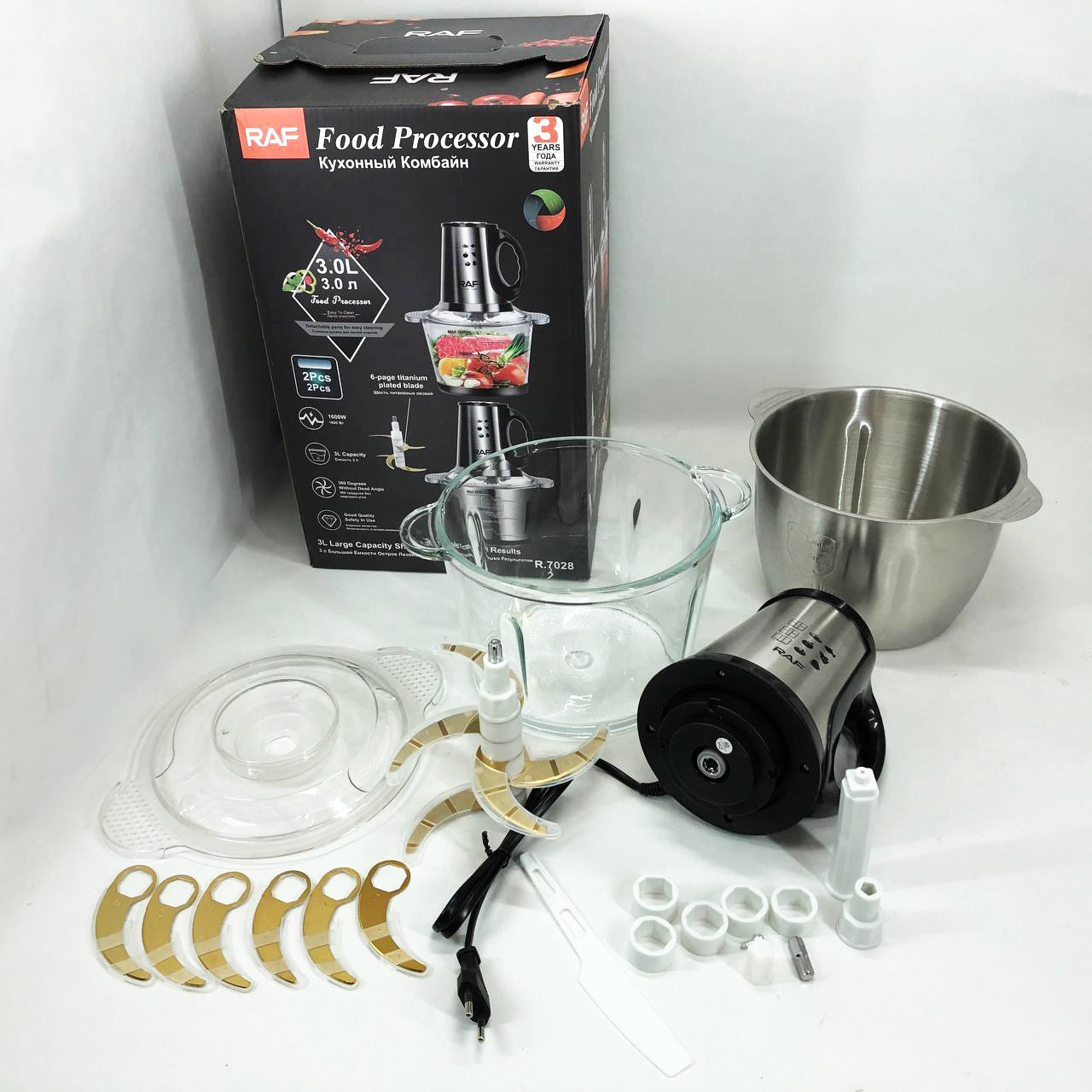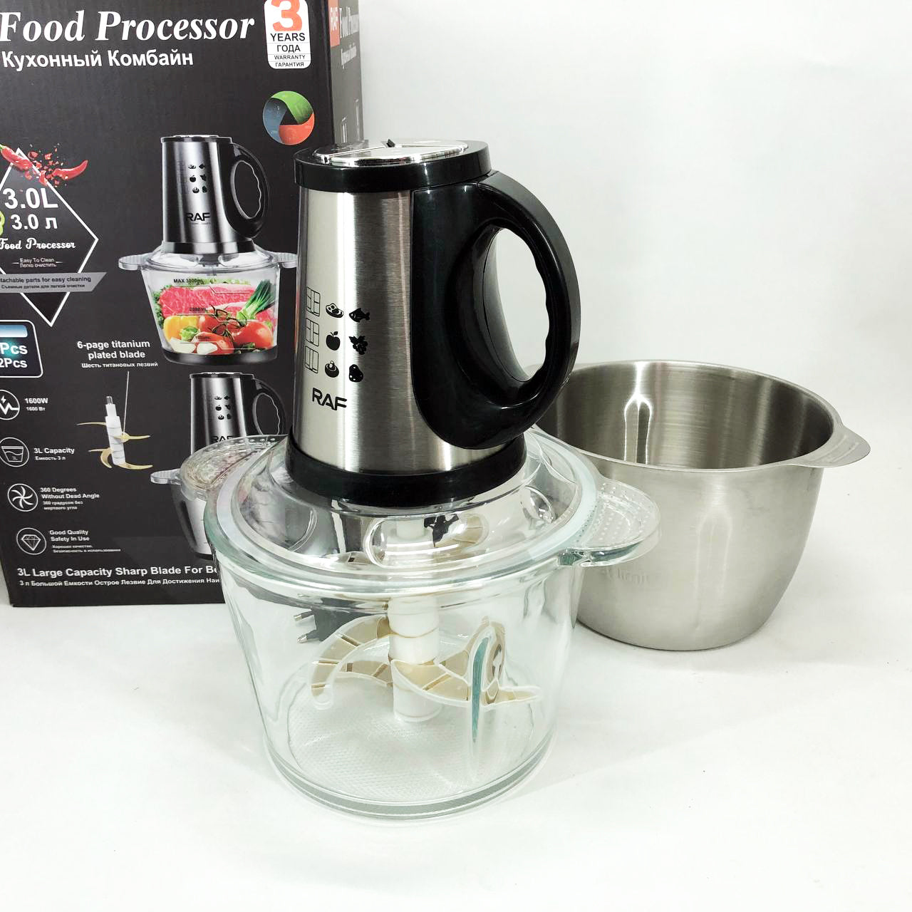 Блендер-измельчитель RAF R.7028 2 в 1, 300 Вт, 2 чаши, Бытовой мощный измельчитель продуктов