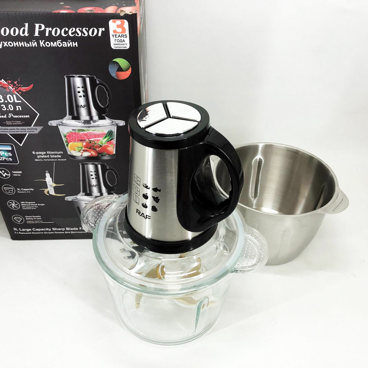 • Две чаши большого объема (по 3 л) – одна из нержавеющей стали, другая из стекла