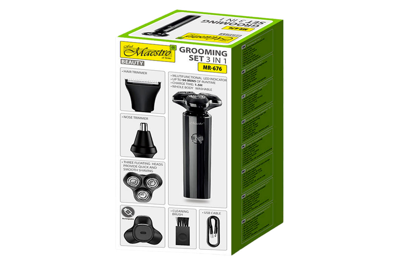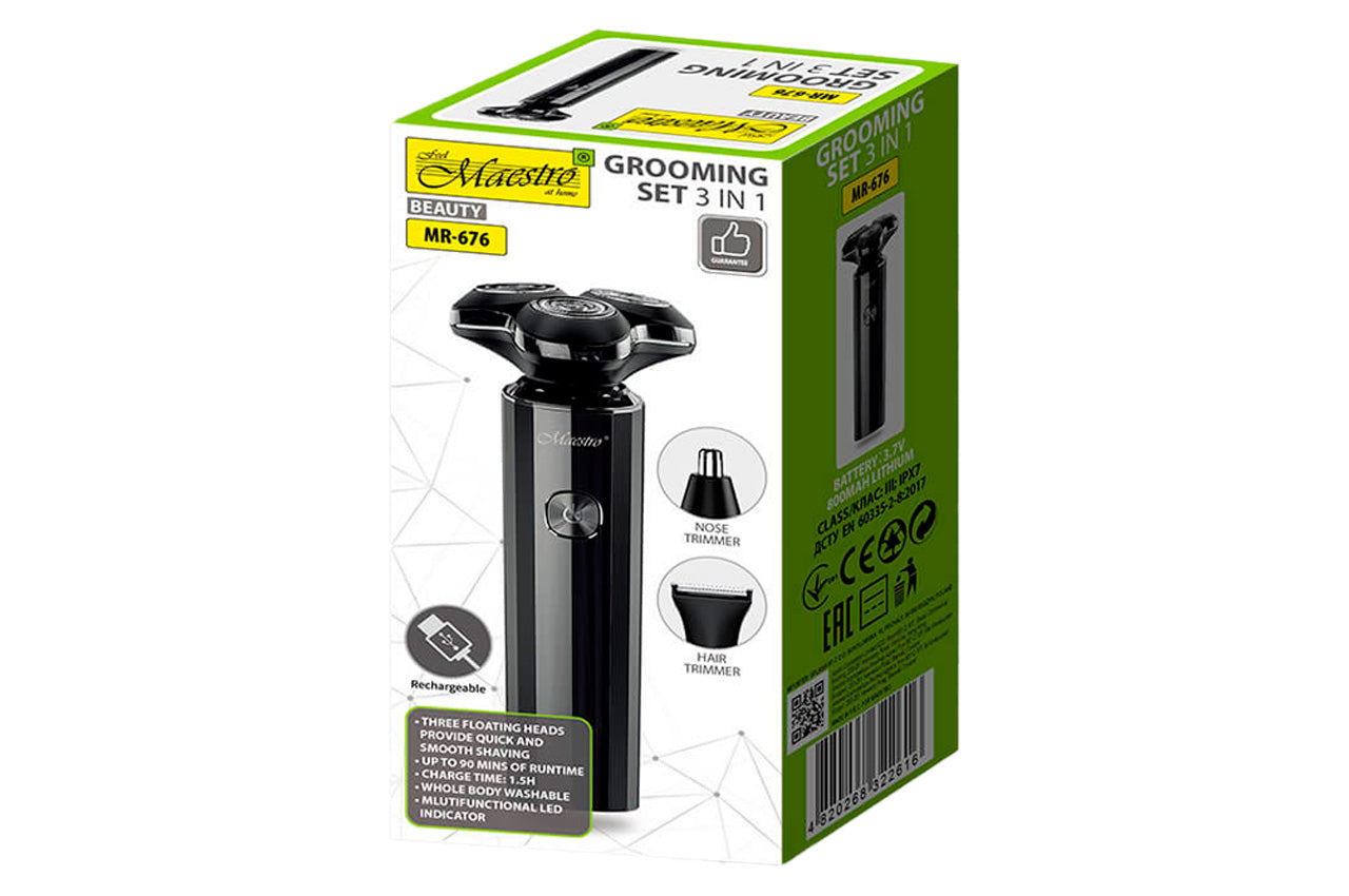 Бритва роторная Maestro - 800мАч x 3 головки x 3 насадки