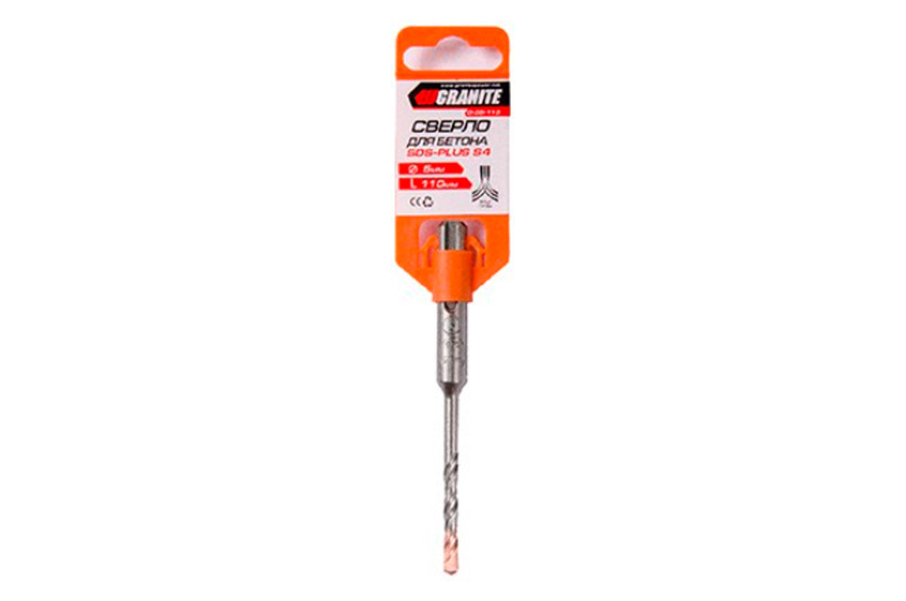 Бур по бетону S4 "Granite" с твердосплавной победитовой напайкой. Используется для образования сквозного или глухого отверстия в сплошном материале и/или для увеличения диаметра имеющегося отверстия. Применяется для отделки кирпичной кладки, железобетона, гранита и жесткого бетона. Хвостовик SDS+; Диаметр сверления – 5 мм; Длина бурая – 110 мм.