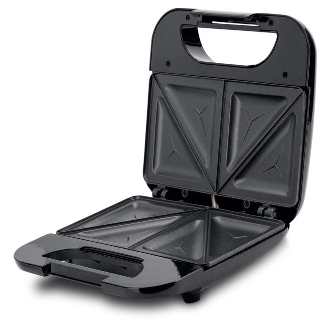 Корпус изготовлен из высококлассного термостойкого пластика черного цвета. Нагревательный элемент мощностью в 800 Вт обеспечит быстрое и равномерное нагревание двух рабочих поверхностей с антипригарным покрытием.