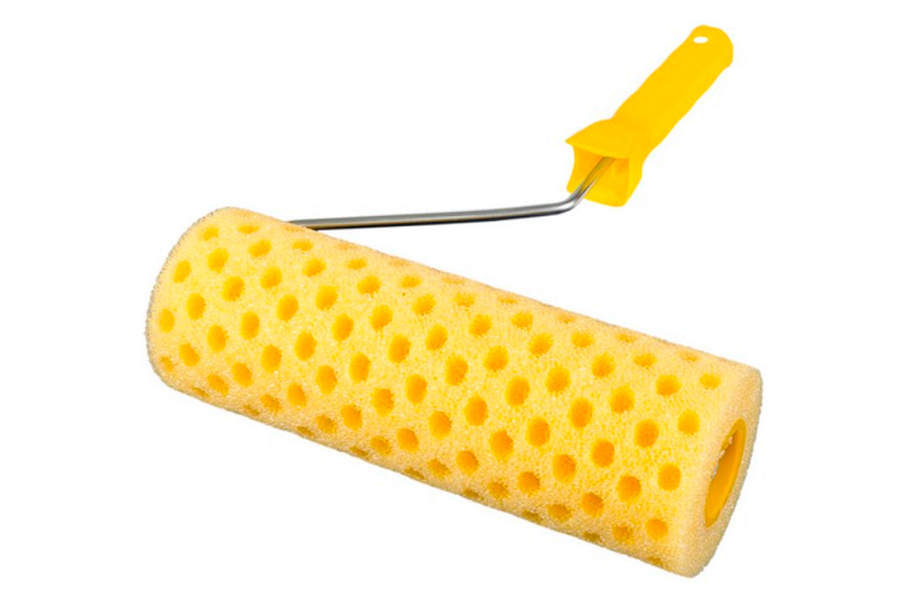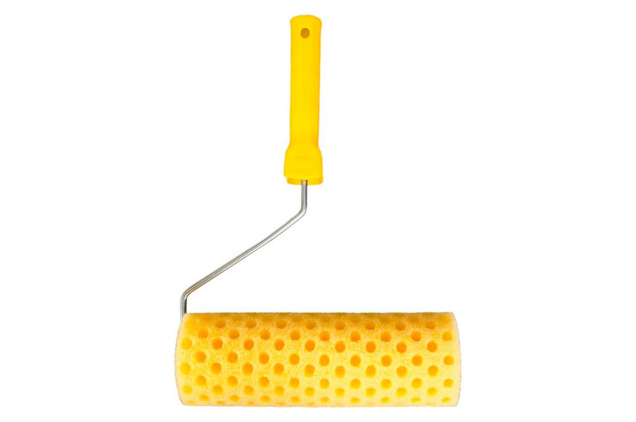 Состоит из стальной ручки с полимерным держателем и сменного элемента – валика, состоящего из полимерного стержня диаметром 80 мм с поролоновым пористым покрытием. Пр ед.назначен для декоративной штукатурки.