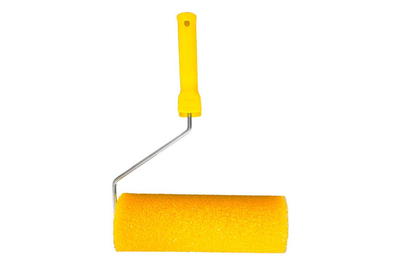 Состоит из стальной ручки с полимерным держателем и сменного элемента – валика, состоящего из полимерного стержня диаметром 80 мм с поролоновым пористым покрытием. Пр ед.назначен для декоративной штукатурки.