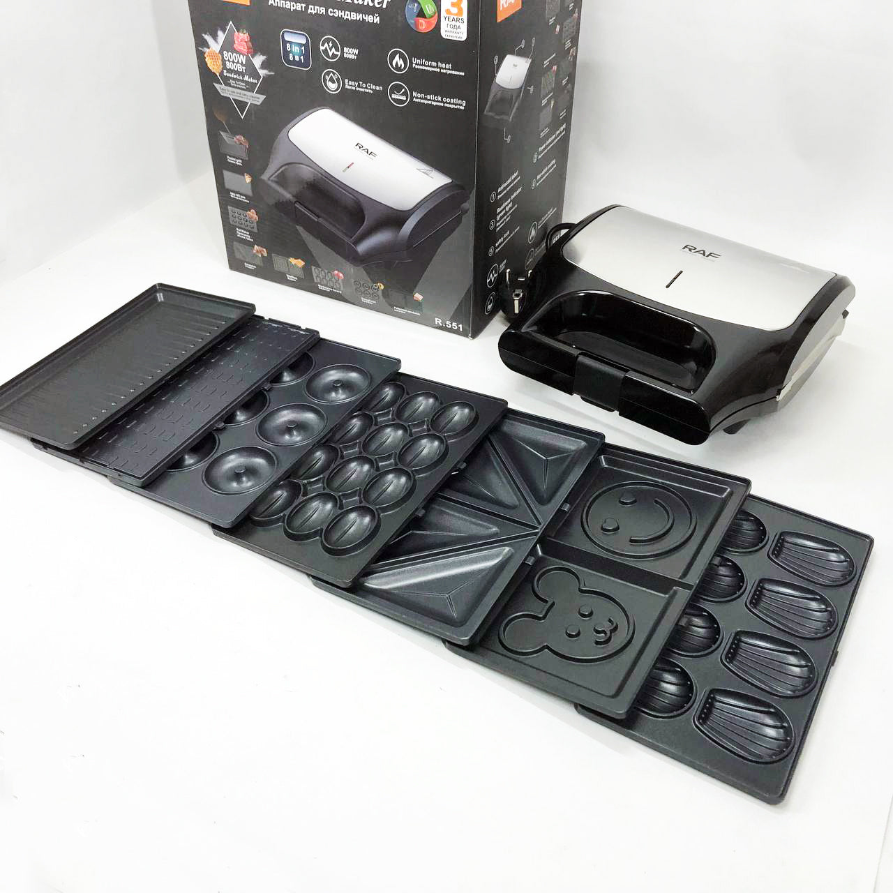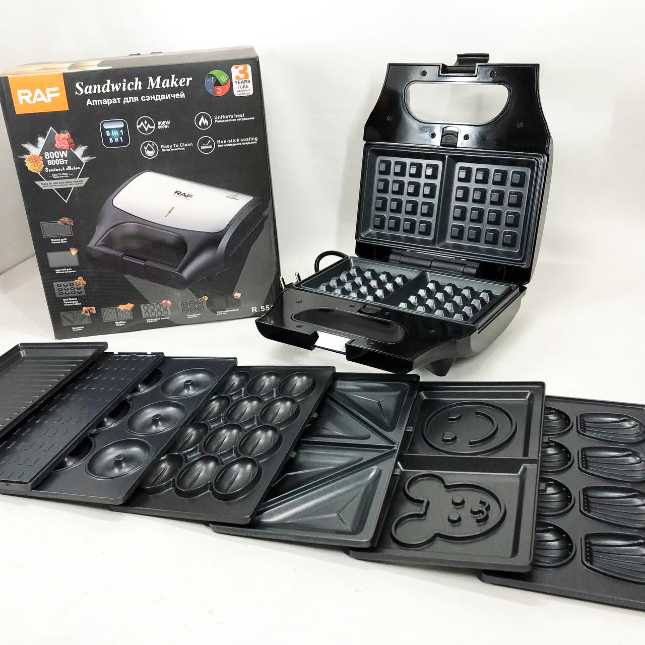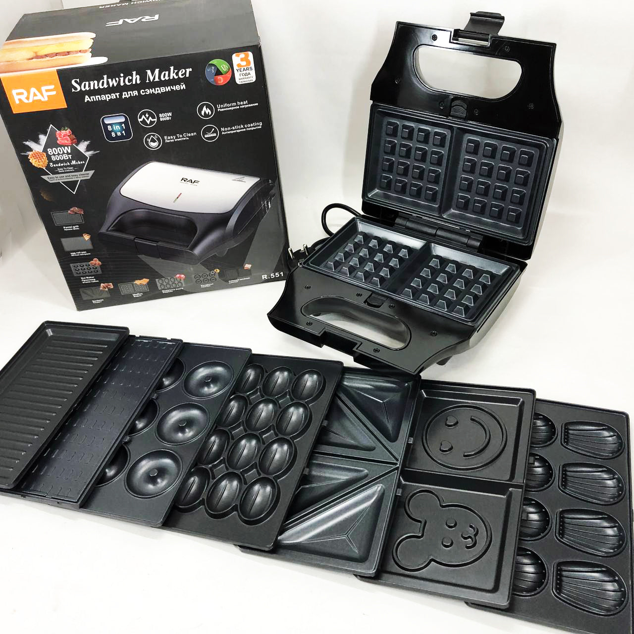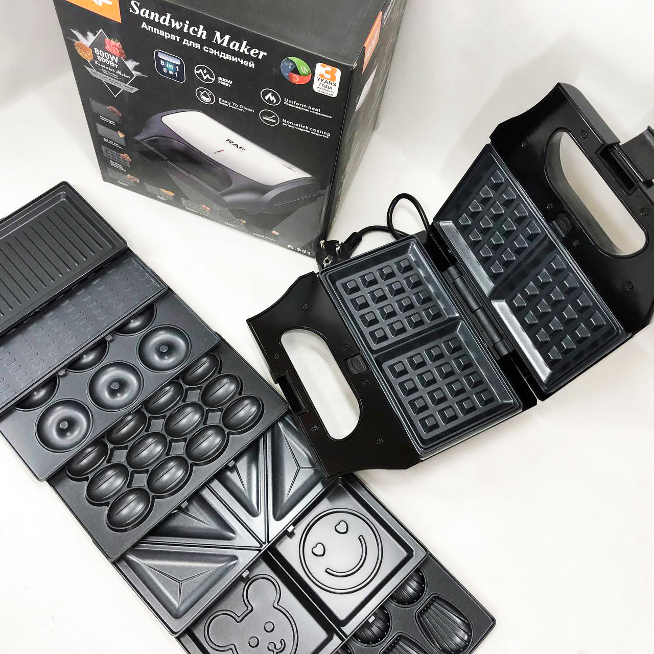Вафельница бутербродница сендвичница гриль электрическая 8 в 1 RAF R.551 850W Мультипекарь со 8 формами