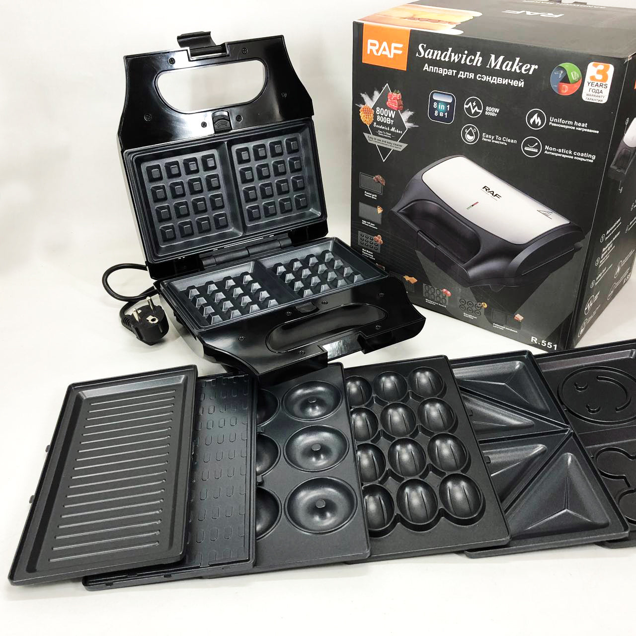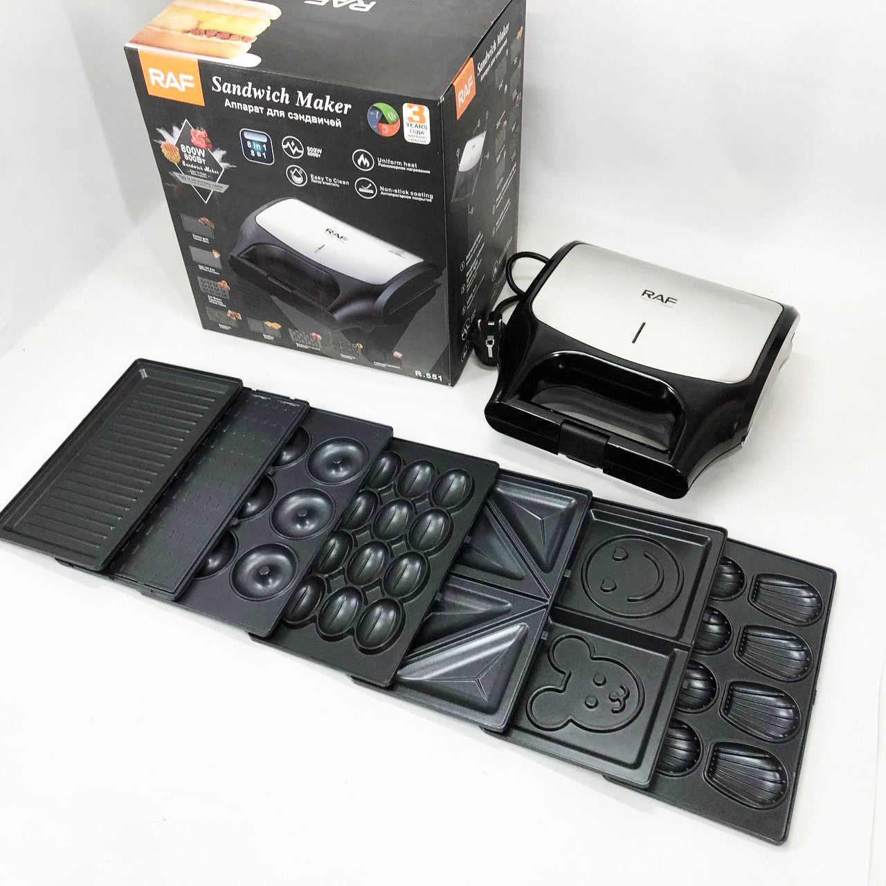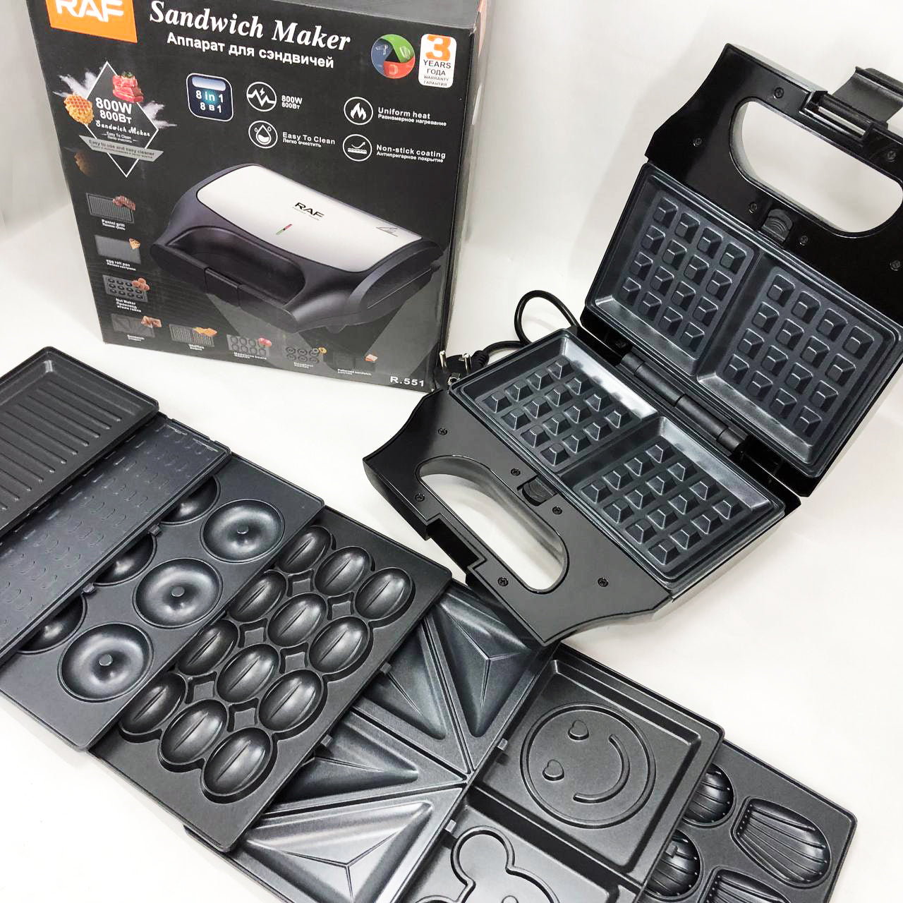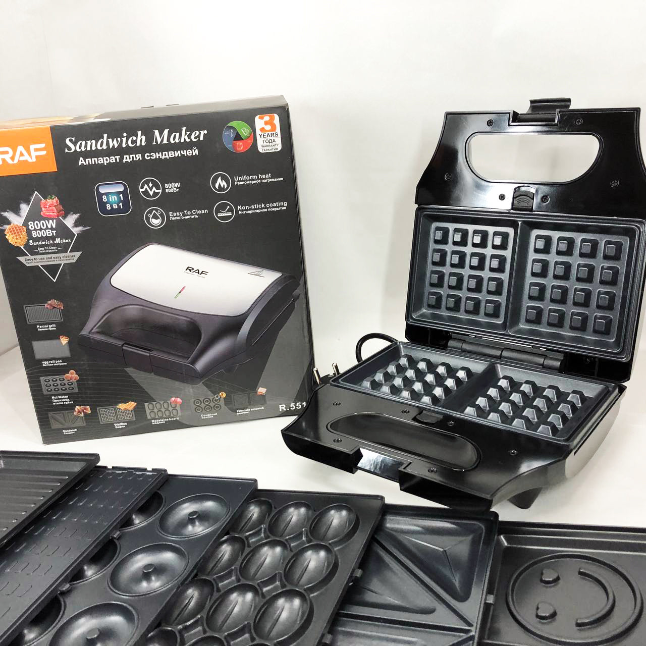 Вафельница бутербродница сендвичница гриль электрическая 8 в 1 RAF R.551 850W Мультипекарь со 8 формами