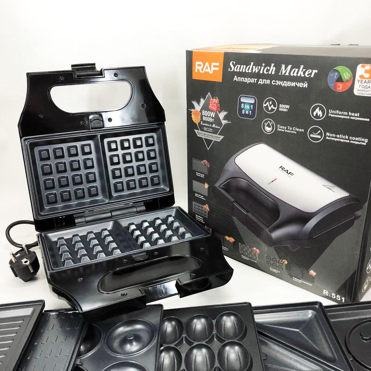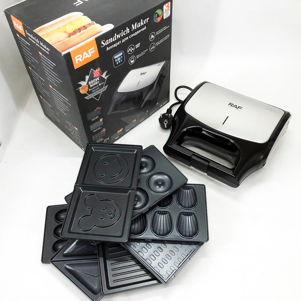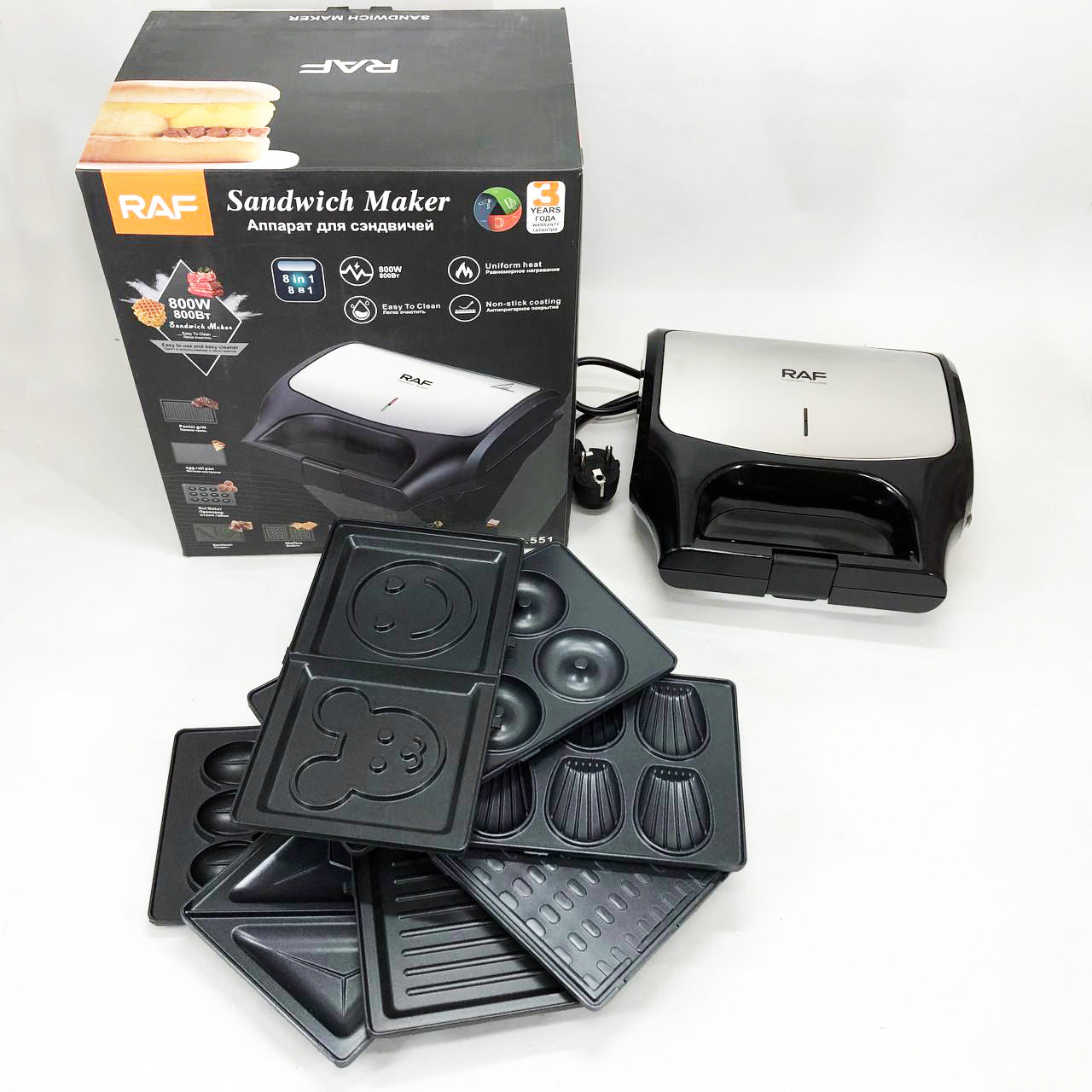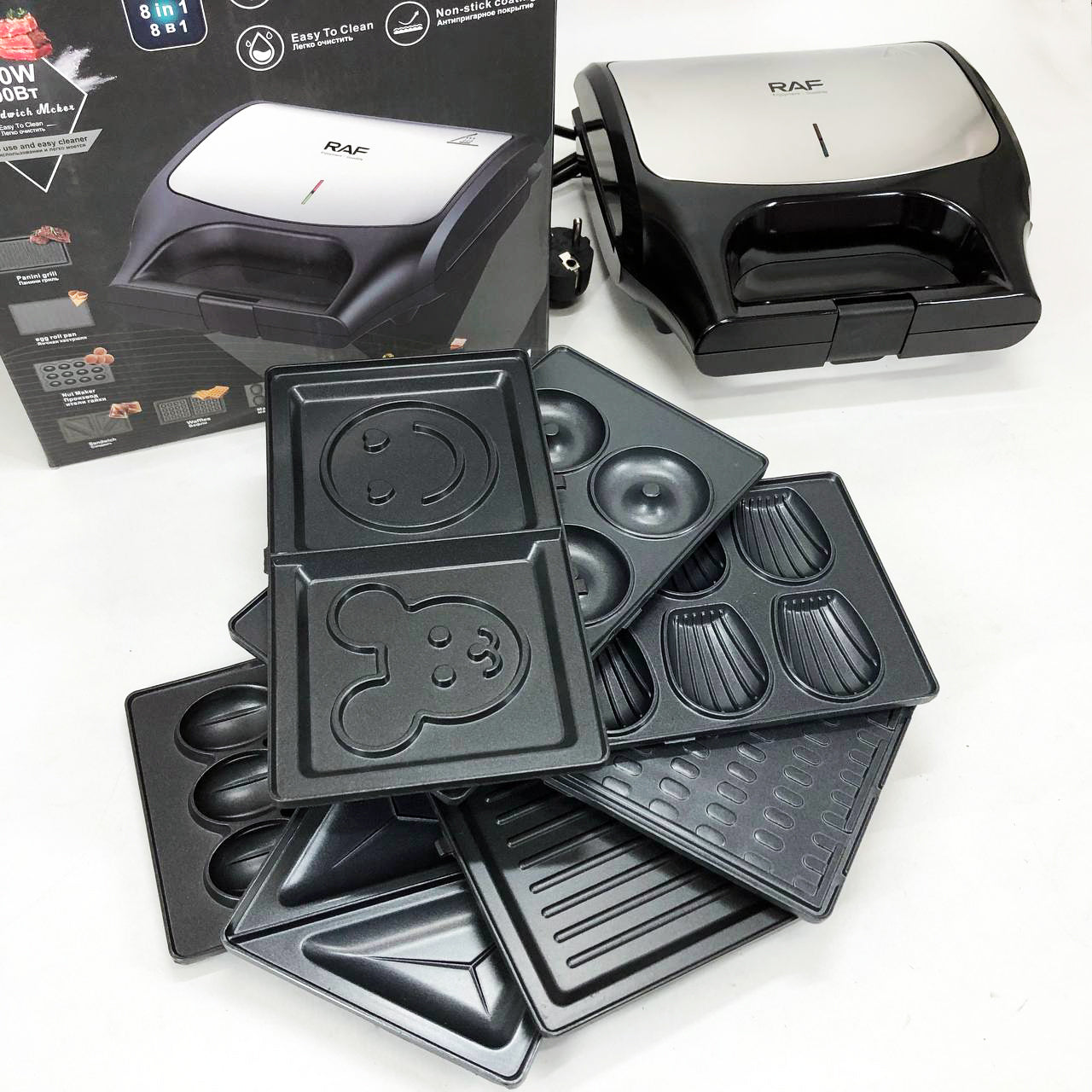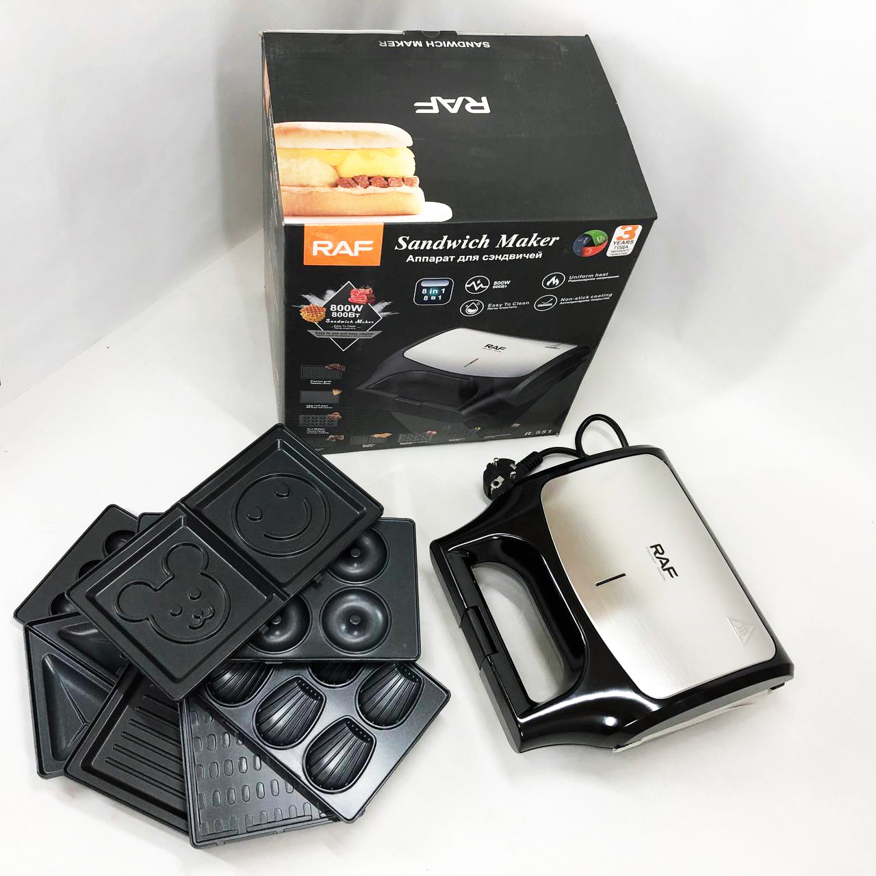 Вафельница бутербродница сендвичница гриль электрическая 8 в 1 RAF R.551 850W Мультипекарь со 8 формами