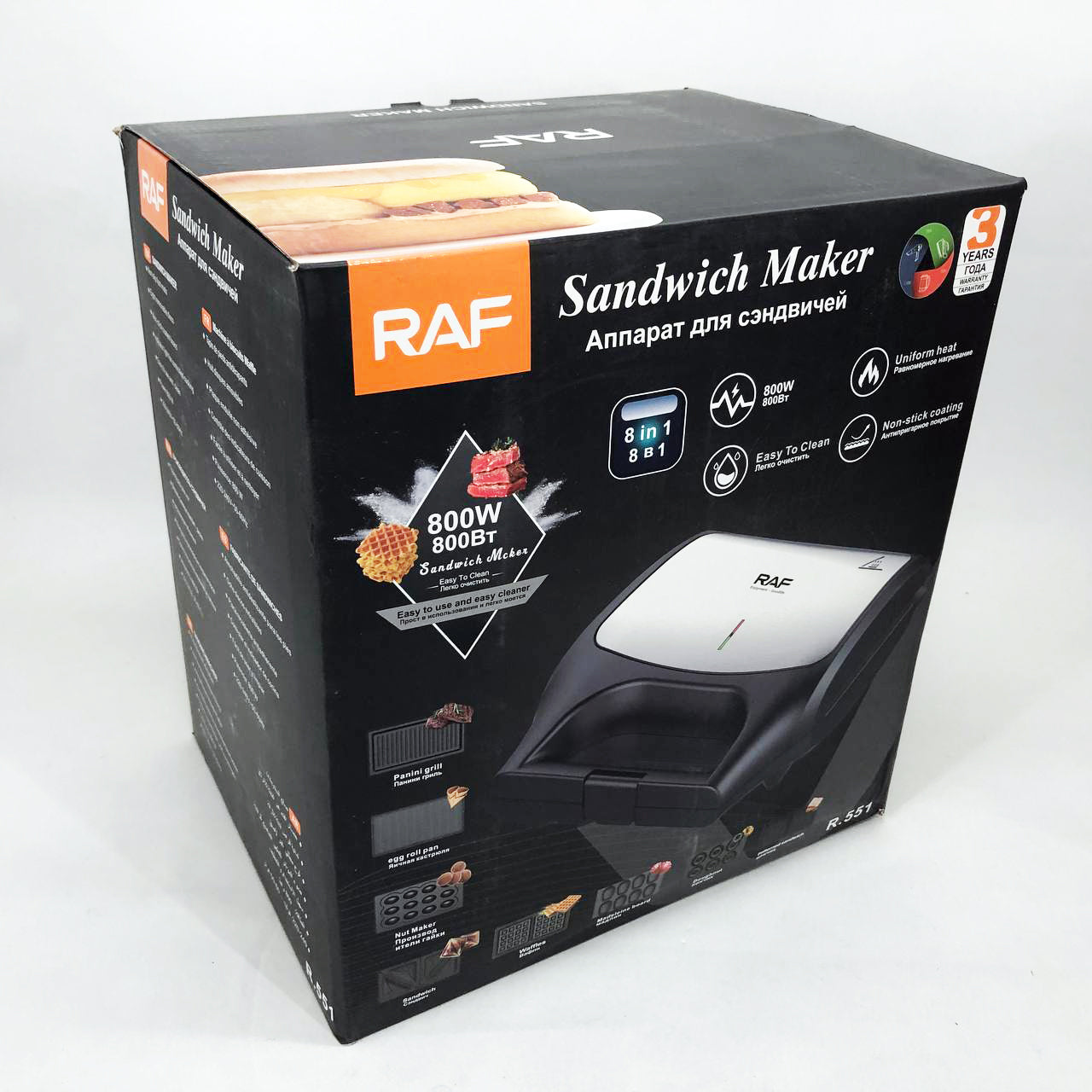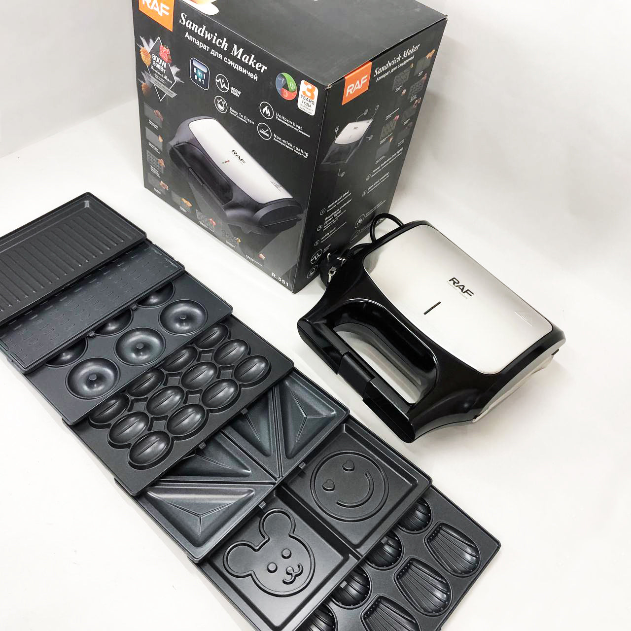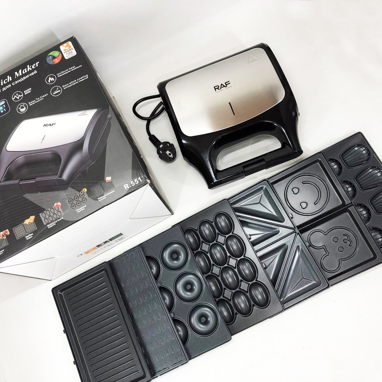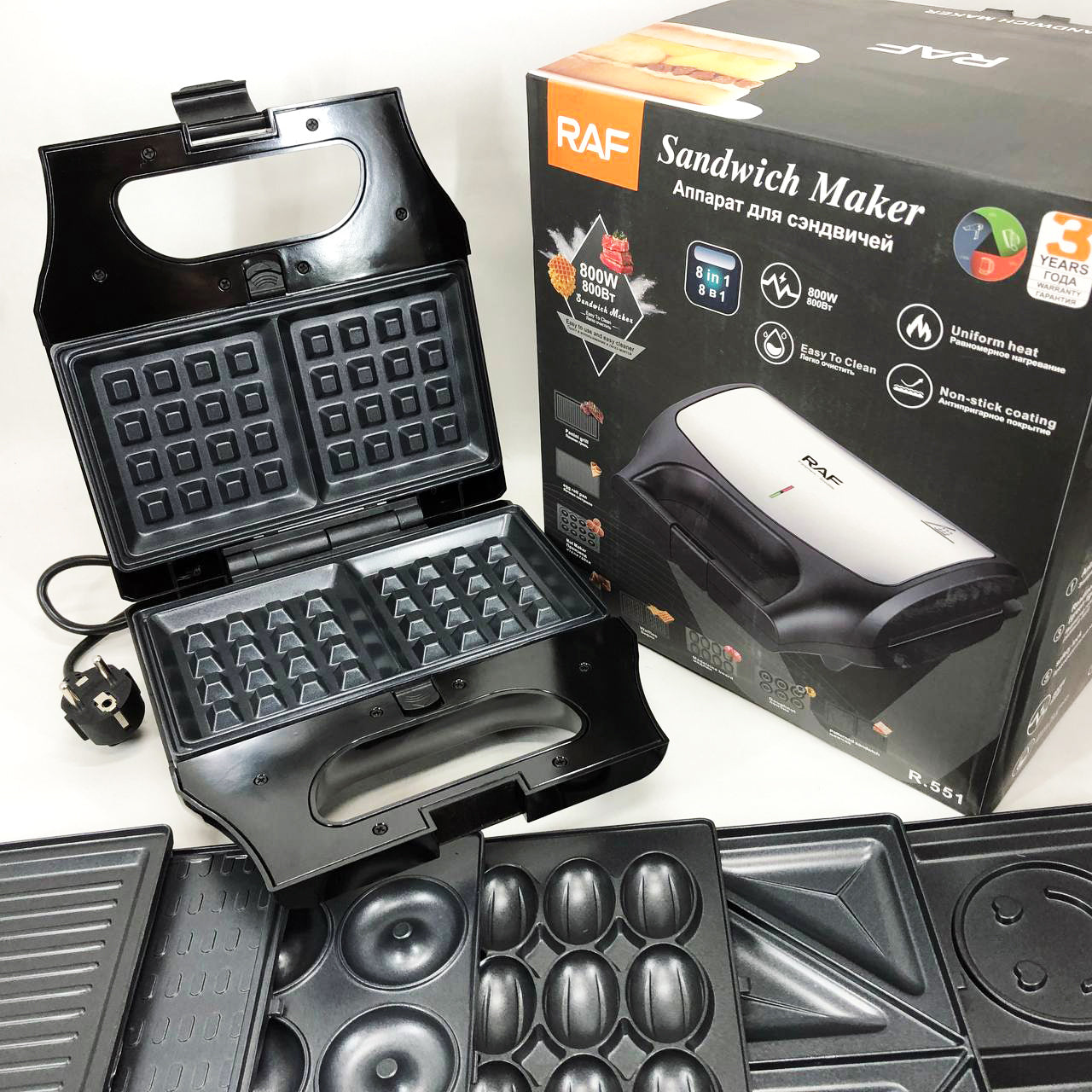 Вафельница бутербродница сендвичница гриль электрическая 8 в 1 RAF R.551 850W Мультипекарь со 8 формами