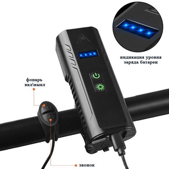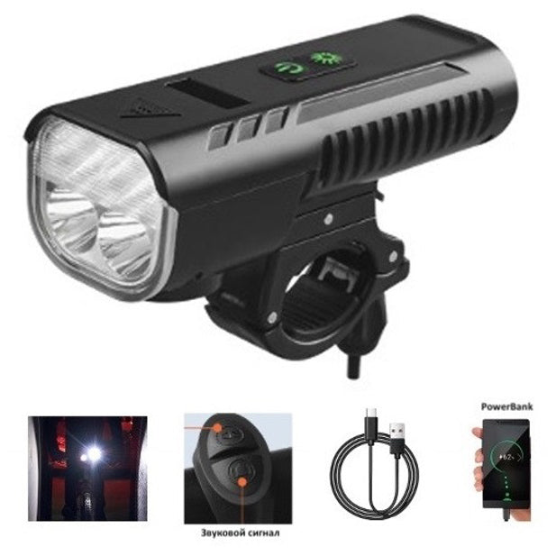 Велофара с сигналом FY-336/2000-4T6 на аккумуляторе с функцией повербанка, Велофонарь с водозащитой с зарядкой