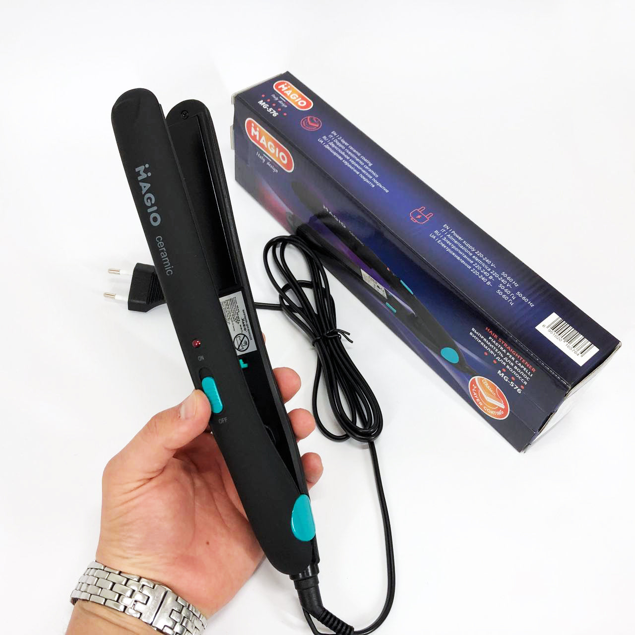 Щипцы для волос MG-576 имеет две ключевые особенности – это удобство и элегантность. С его помощью можно быстро справиться даже с самыми непослушными волосами, красиво их уложить и придать им нужную форму, причем такая прическа сохранится надолго. Корпус выполнен из приятного на ощупь высококачественного пластика, который предотвращает плавление при нагреве и гарантирует длительный срок службы инструмента. А благодаря покрытию Soft Touch рука не скользит, что приводит вероятность травмирования практически к нулю. Материал поверхности рабочих пластин - керамика, что влияет не только на конечный результат прически, но и на здоровье волос. Такой вид пластин наносит наименьший вред, быстро и равномерно нагреваются, легко скользят по волосам и предотвращают электризацию. Утюжок с мощностью всего 25 ВТ способен нагреваться до 185 °С. Петелька для подвешивания и блокировка ручки создают дополнительное удобство при использовании.