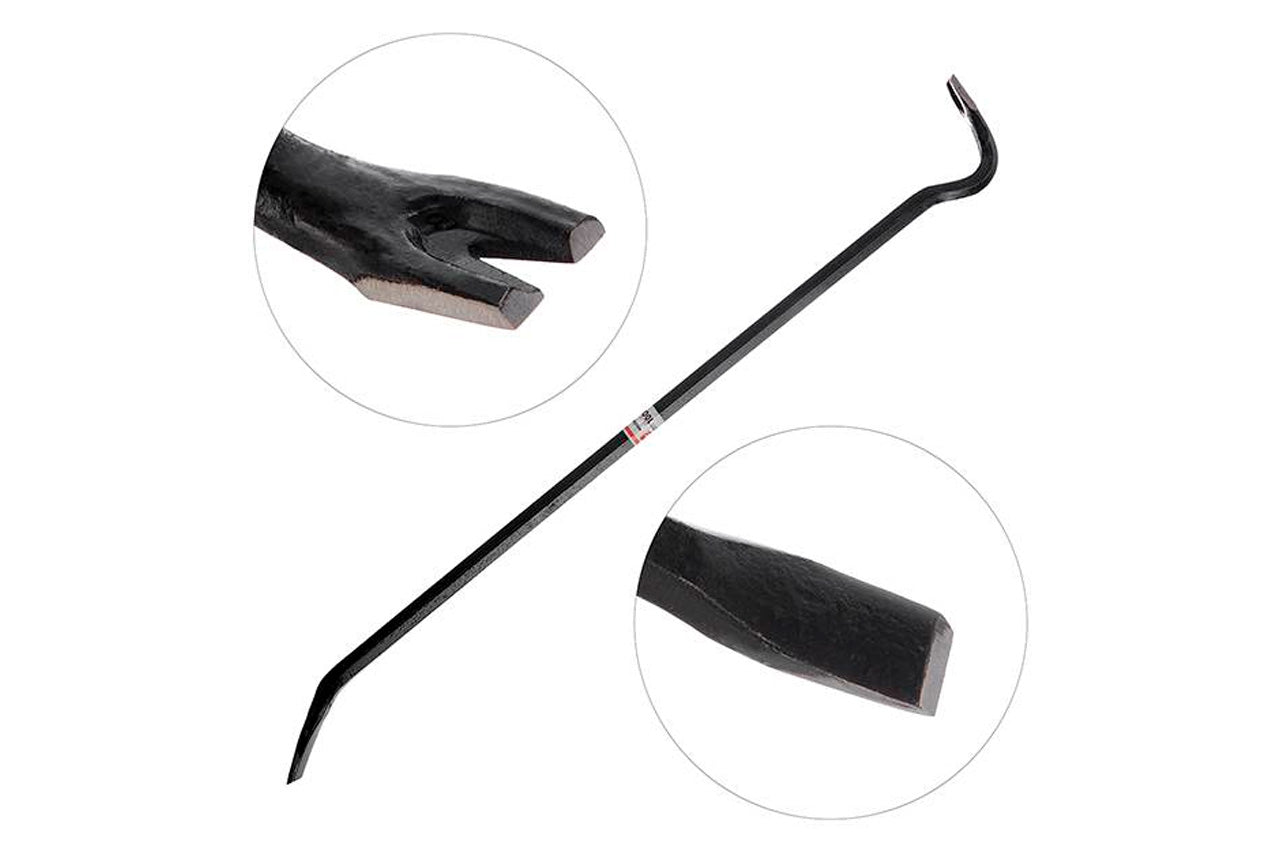 Лом шестигранного сечения изготовлен из высокопрочной инструментальной стали. Оснащен гвоздодером. Размеры: 750x18 мм