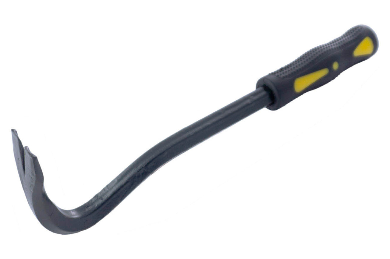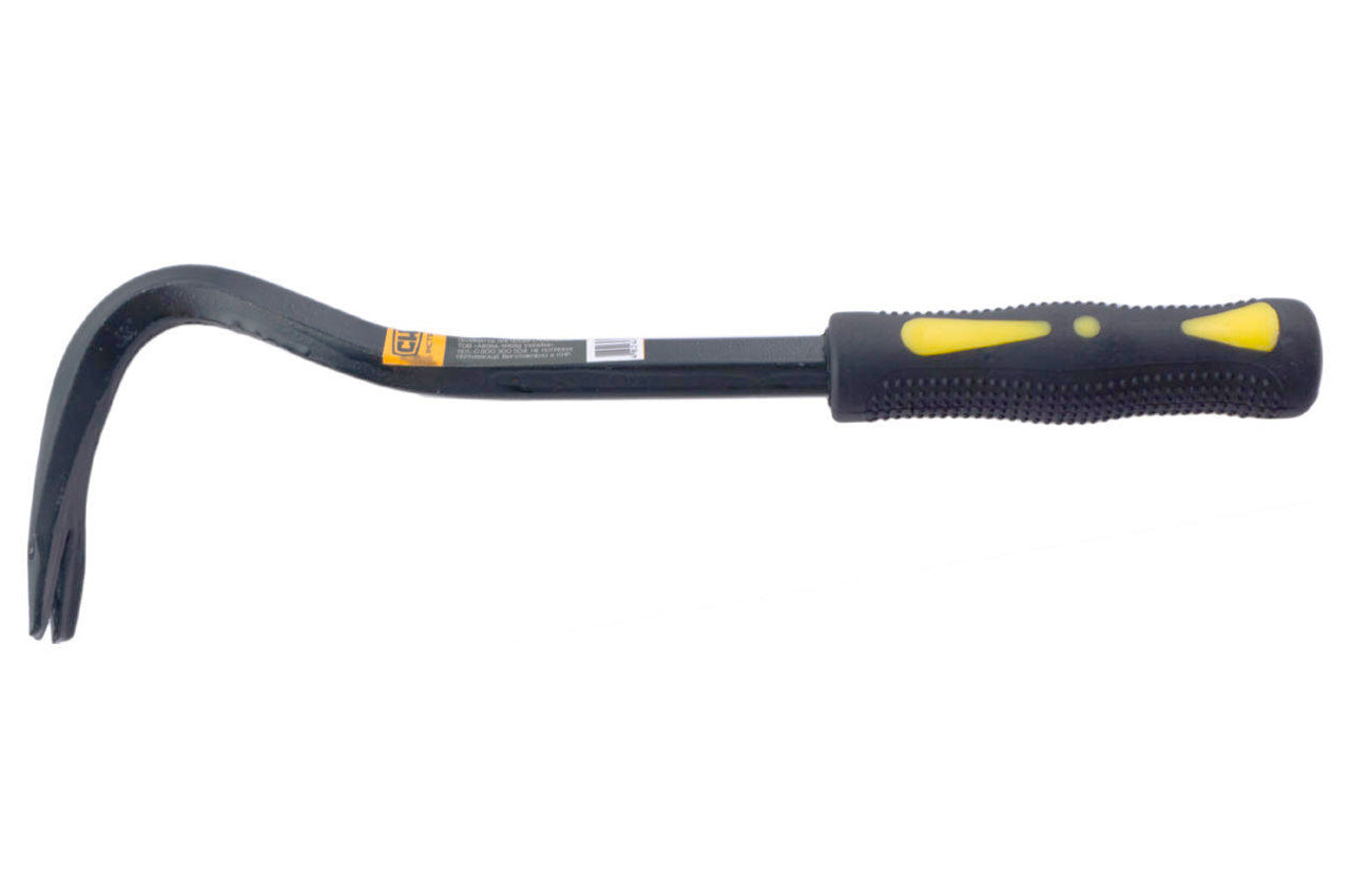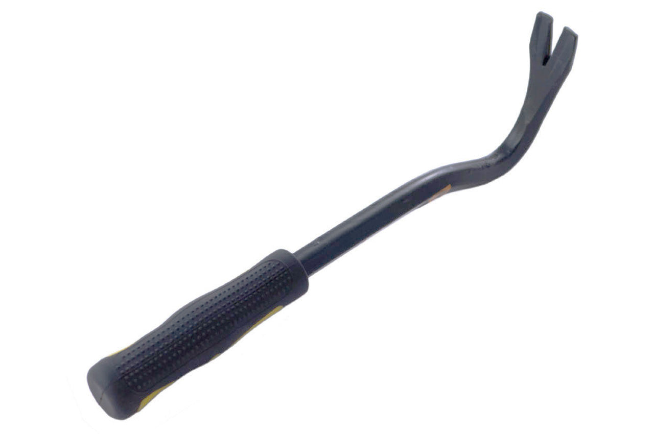 Гвоздодер оснащен прорезиненной удобной рукояткой, что облегчает работу с инструментом. Предназначается для удаления с поверхностей гвоздей. Размеры: 300x14 мм
