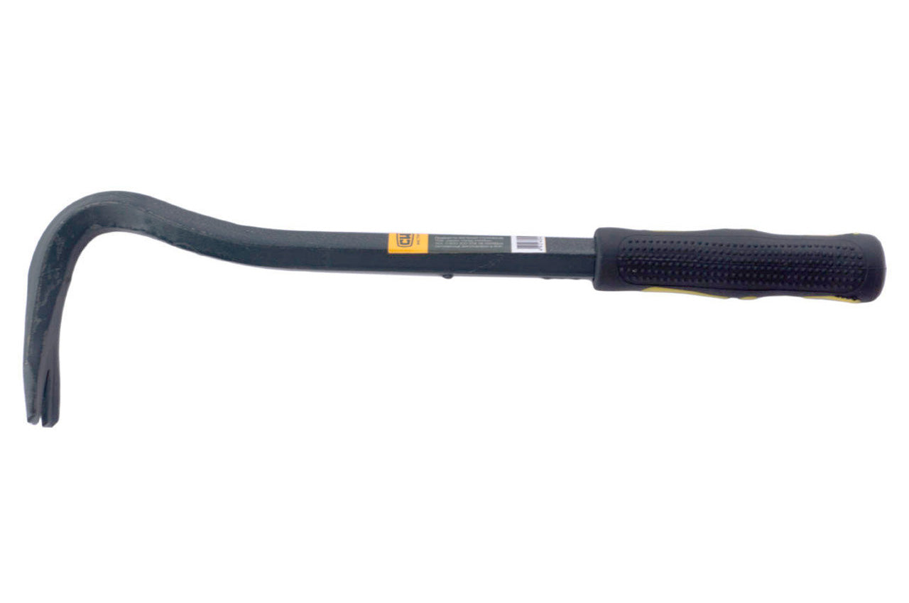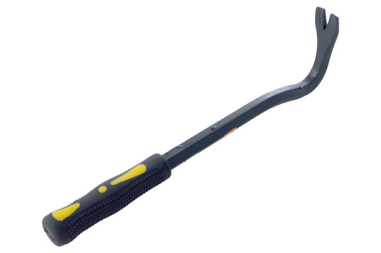 Гвоздодер оснащен прорезиненной удобной рукояткой, что облегчает работу с инструментом. Предназначается для удаления с поверхностей гвоздей. Размеры: 350 x 16 мм