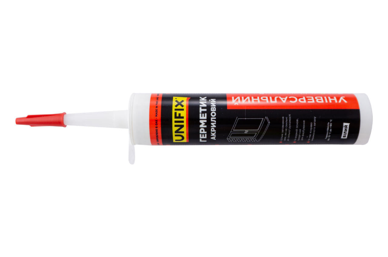 Герметик акриловый Unifix - 280 мл белый используется для герметизации и уплотнения швов вокруг дверей, окон, систем вентиляции. Уплотнение стыков между потолком и стеной. Соединение блоков, которые не подвержены сильной подвижности. Герметизация воздуховодов.