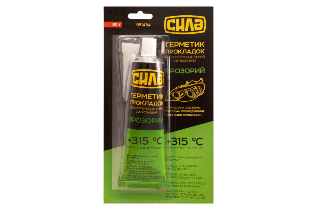 Герметик высокотемпературный Сила - 85г прозрачный предназначен для ремонта и замены прокладок, используемых при высоких температурах от -70 до + 315°С. 100% Натуральный силикон, устойчивый к автомобильным жидкостям. Безопасен для электронных датчиков. Сохраняет гибкость и эластичность после высыхания.