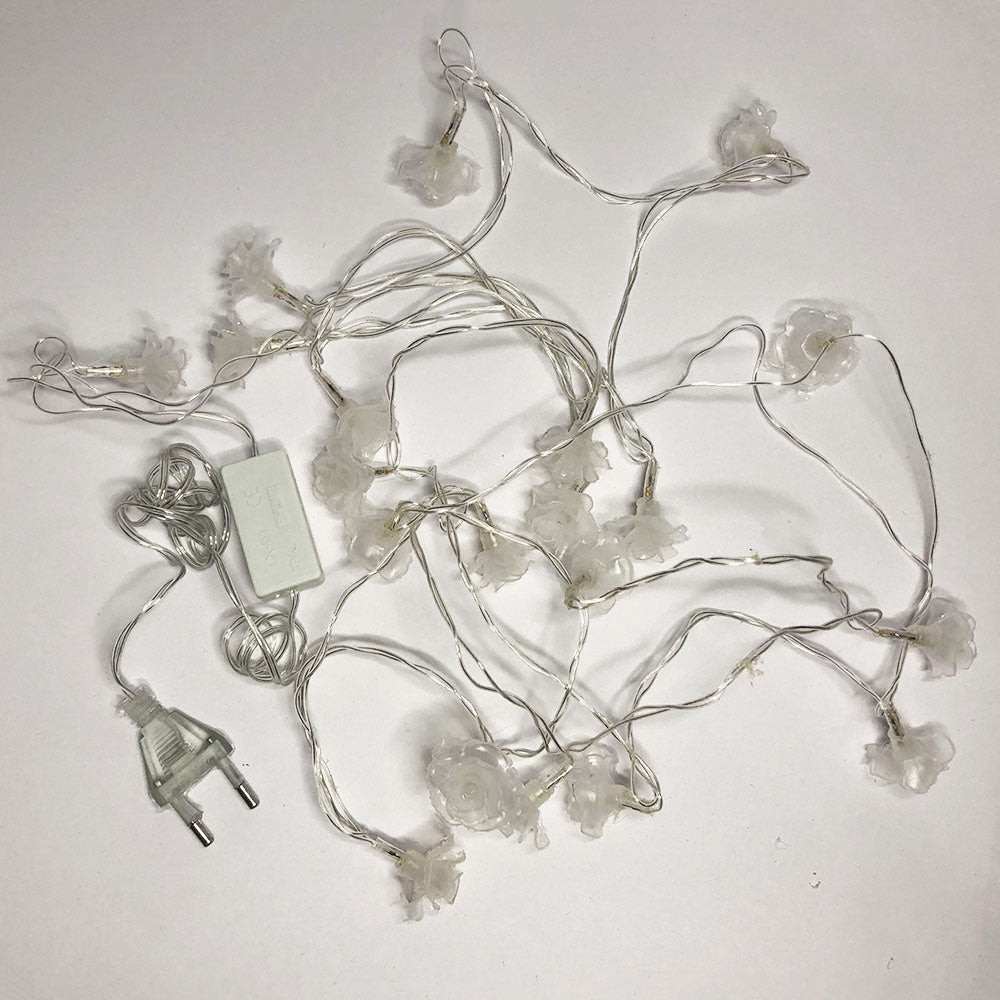 Гирлянда светодиодная цветочки разноцветные, провод прозрачный, 3м