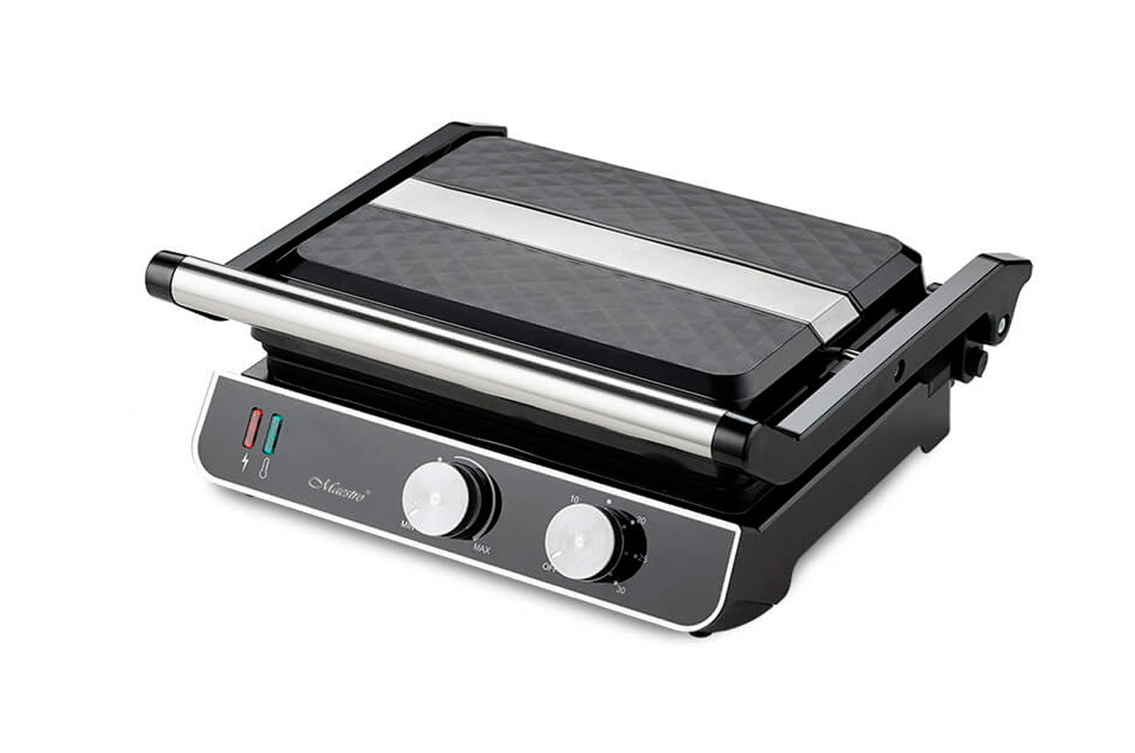 Контактный гриль Маестро MR-722 отлично подойдет для жарки мяса, овощей, приготовления горячих бутербродов и шаурмы. Можно использовать в развернутом на 180 градусов виде, как большую сковороду. Нагревательные пластины имеют антипригарную керамическую поверхность, благодаря чему еда не пристает и не пригорает.