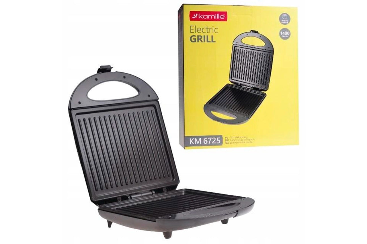 Гриль Kamille обладает эргономичным дизайном и хорошо продуманными деталями, благодаря чему работать с ним комфортно и приятно, а главное безопасно. Его нагревательная поверхность с эффективным антипригарным покрытием выполнена в форме гриля, она нетребовательна в уходе и устойчива к механическим повреждениям.