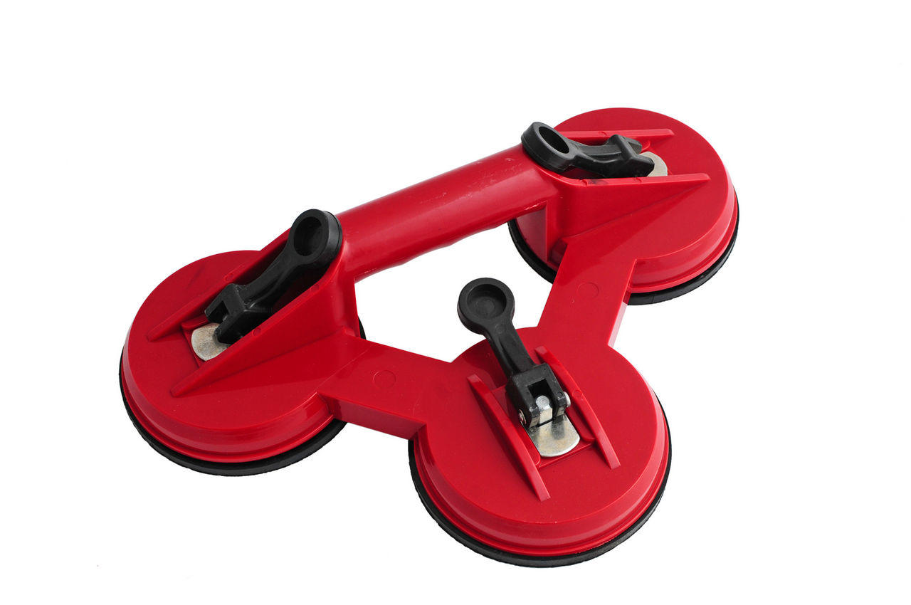 Держатель - присоска предназначен для удержания, установки, снятия и переноски стекла, плитки, пластмассы, листового металла и практически любого непористого материала. За счет вакуумного соединения выдерживает вес 160 кг. Также может использоваться для удаления вмятин на кузове автомобиля. Предусмотрены три рабочих фиксатора для более эффективной работы и транспортировки тяжелых материалов. Корпус держателя изготовлен из прочного ABS пластика, а три рабочих присоски из высококачественной резины, благодаря которым и происходит фиксация и удержание предметов.