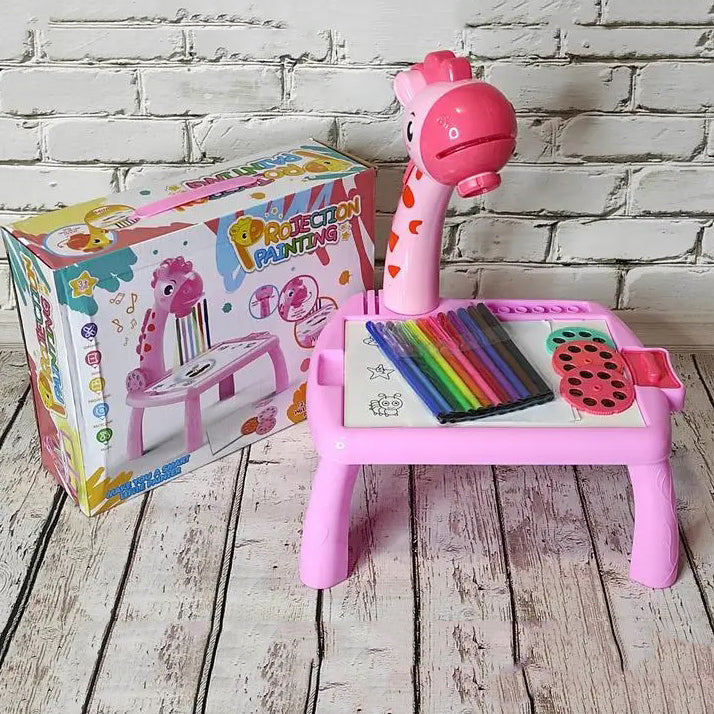 Представляем вам помощника в рисовании — детский проектор со столиком Projector Painting. С его помощью любой ребенок сможет изобразить животное или машинку.Детский проектор для рисования со столиком — это технически несложное устройство, представляющее собой небольшую мини-лампу, проецирующую свет на пластиковую доску.