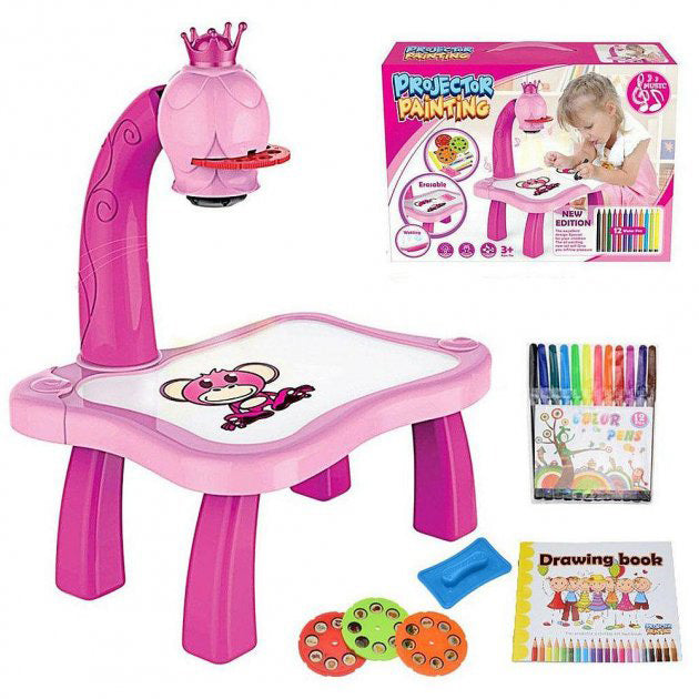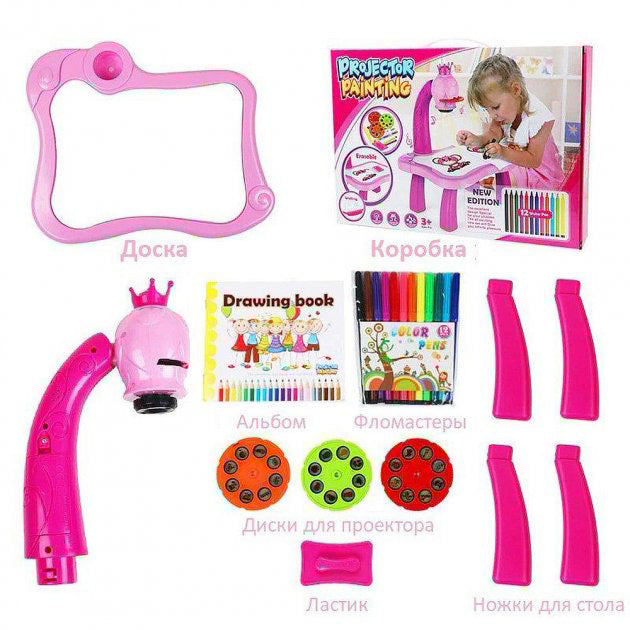 Детский стол проектор для рисования с подсветкой Projector Painting. Цвет: розовый