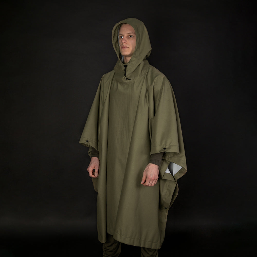 Многофункциональное изделие, которое может служить влаго-ветрозащитной накидкой от непогоды, тентом или палаткой, как временное укрытие от солнца и дождя или покрывалом на землю, а так же мягкой подушкой под голову сложенное в чехол. Отлично защищает от дождя, и не заменим в маскировке.