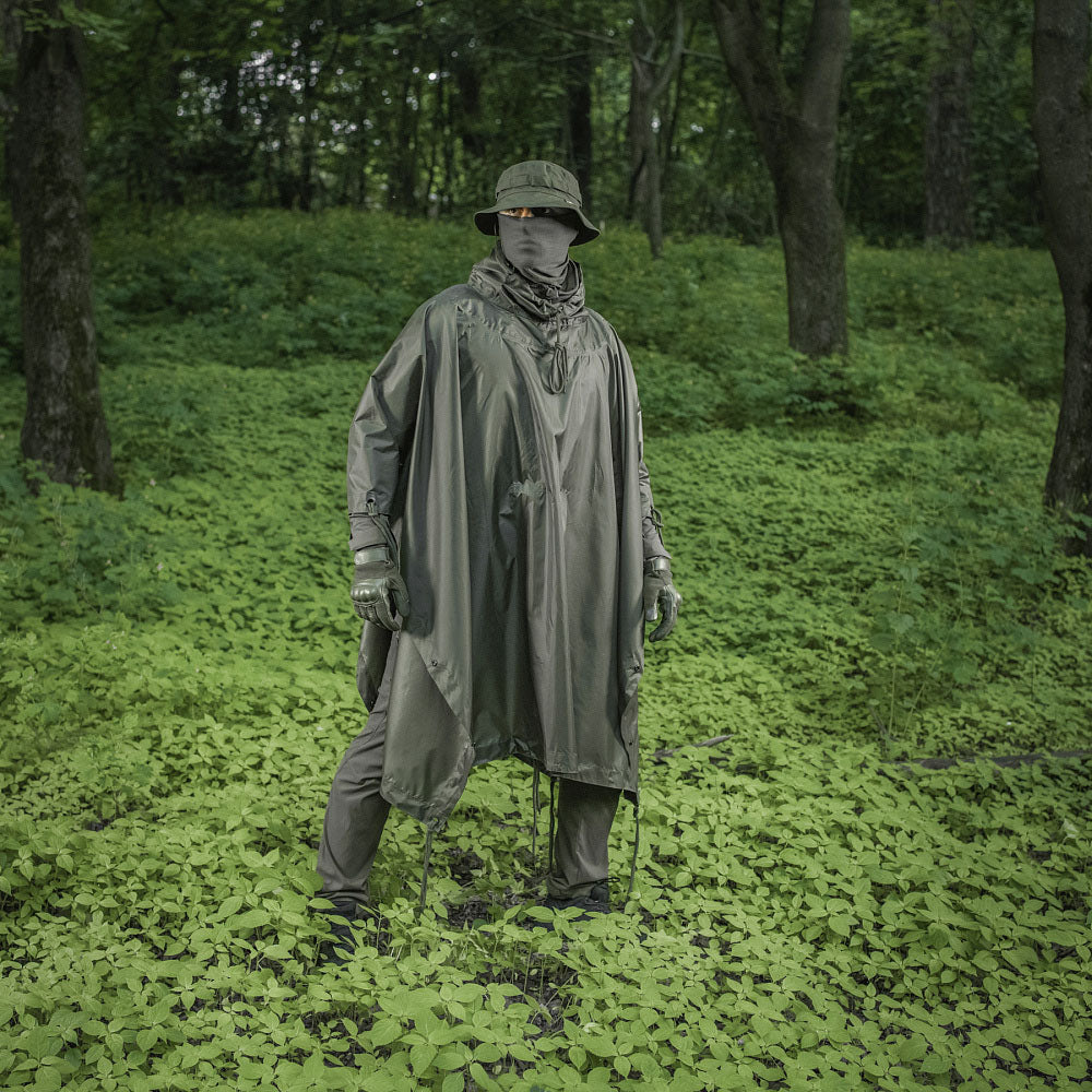 Качественный и надежный тактический дождевик-пончо, выполненный из прочной и легкой ткани.