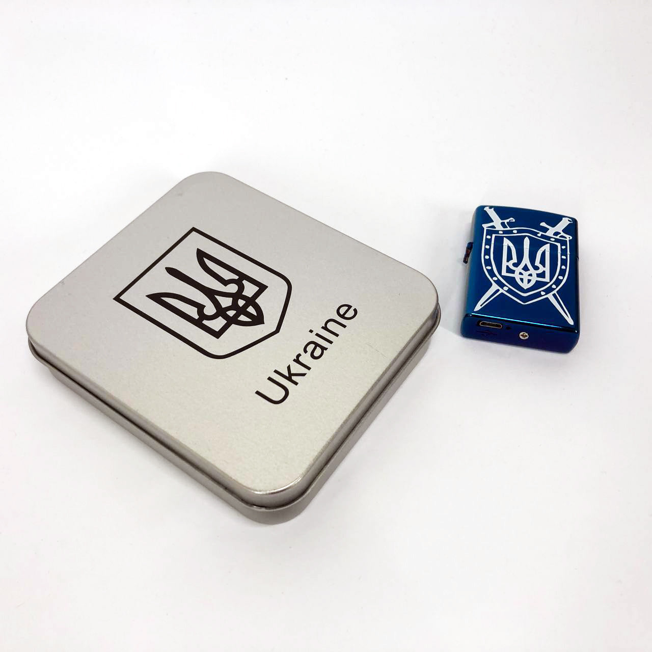 Дуговая электроимпульсная USB Зажигалка аккумуляторная Украина металлическая коробка HL-446. Цвет: синий