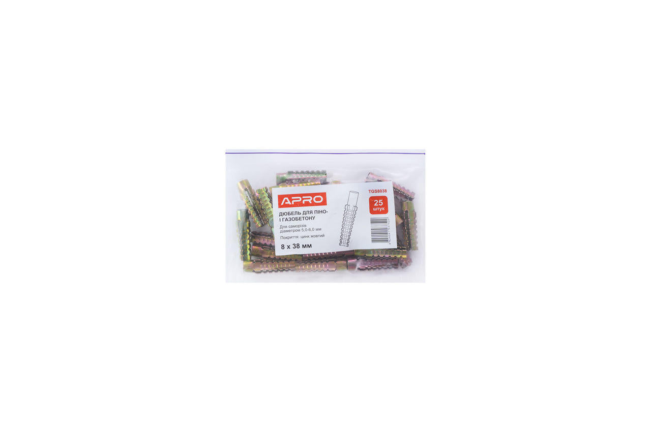 Дюбель для пенобетона и газобетона Apro - 8 x 38 мм (25 шт.)