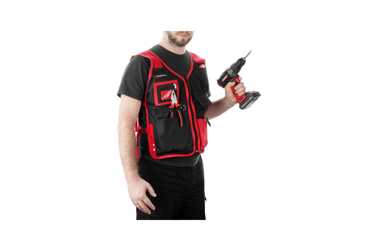 Предназначен для ношения ручного инструмента и мелких деталей в нем. В этом жилете имеется 7 карманов для ношения инструмента. На жилете имеются резиновые держатели для ношения отверток и другого ручного удлиненного инструмента. Жилет выполнен из высокопрочной ткани - полиэстера, внутренняя подкладка жилета сделана из нейлоновой сетки. Наличие регулирующих боковых замков позволяет подогнать жилет под необходимый размер. Количество карманов: 7