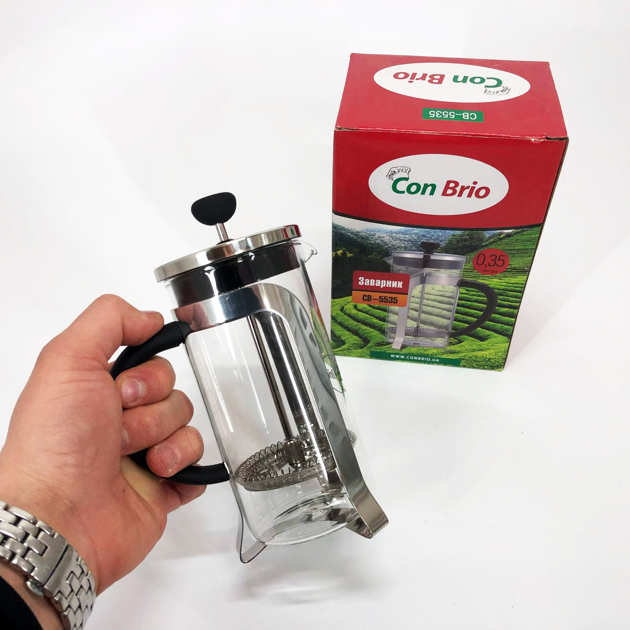 Заварник 350 мл стекло + нержавеющая сталь Con Brio CB-5535, Чайник для заваривания трав красивый