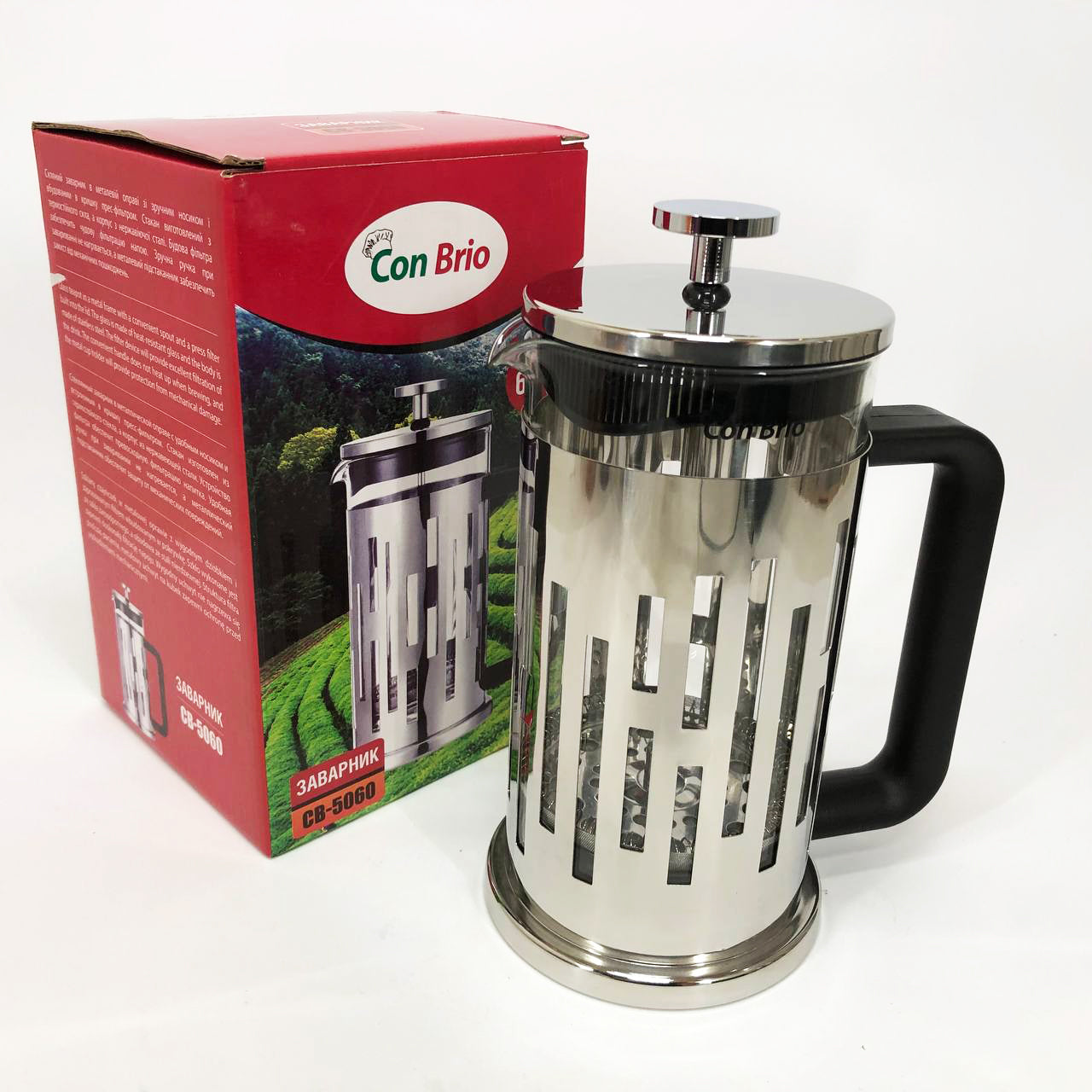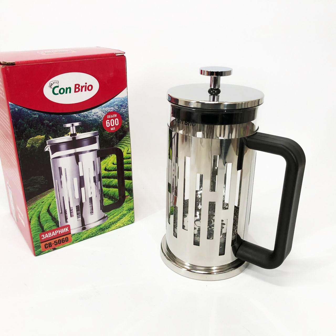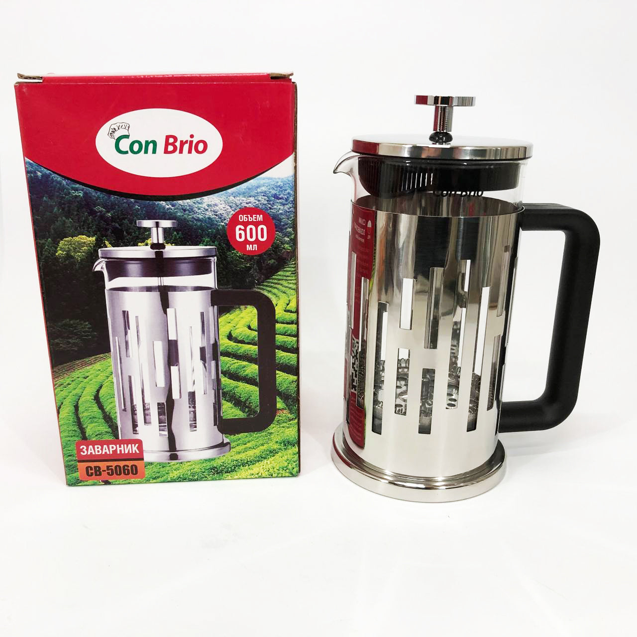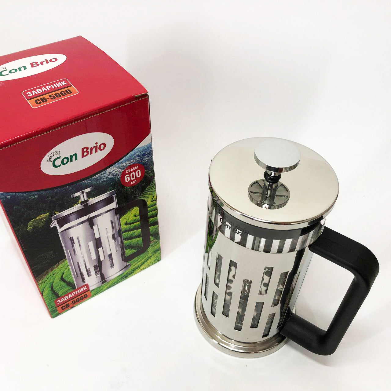 Френч-пресс Con Brio CB-5060 станет отличным помощником на кухне для приготовления заварного чая методом отстаивания. Является одним из самых удобных приспособлений, позволяющих сэкономить время и насладиться любимым напитком. Френч-пресс отлично подойдет для ежедневного использования или для сервировки праздничного стола, благодаря стильному и современному внешнему виду.