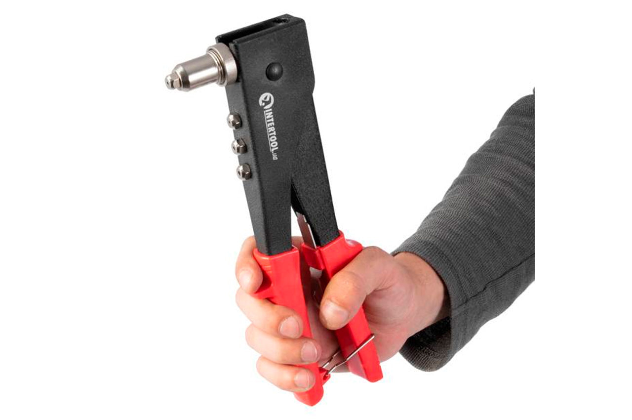 Пистолет заклепочный ручной предназначен для установки стальных и алюминиевых заклепок диаметром 3.2, 4 и 4.8 мм. Есть возможность переставления рабочей головки на 90°, что позволяет работать в сложнодоступных местах. Позволяет скреплять несколько слоев материала или несколько деталей. Сверхпрочный инструментальный металл обеспечивает долгий срок службы. Эргономичные пластиковые насадки на ручки создают комфорт при работе с инструментом.