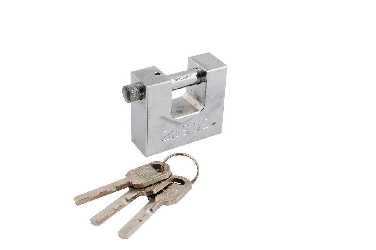 Замок навесной FZB изготовлен из нержавеющей стали, имеет П-образный литой корпус шириной 60 мм. В комплекте с замком три ключа.