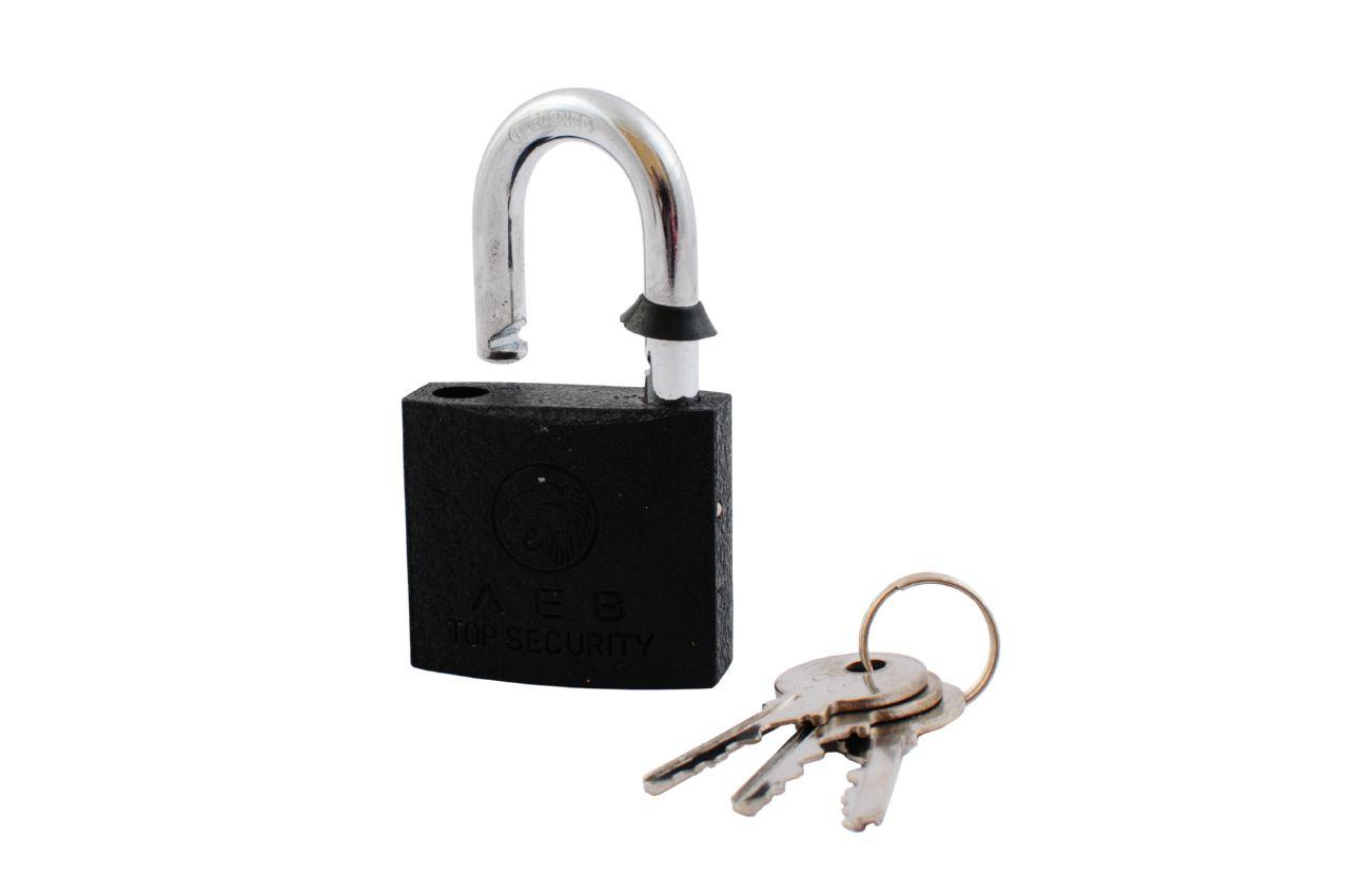 Навесной замок с закаленной дужкой, ширина 63 мм. Материал - чугун с антикоррозийным порошковым покрытием. В комплекте с замком три ключа.