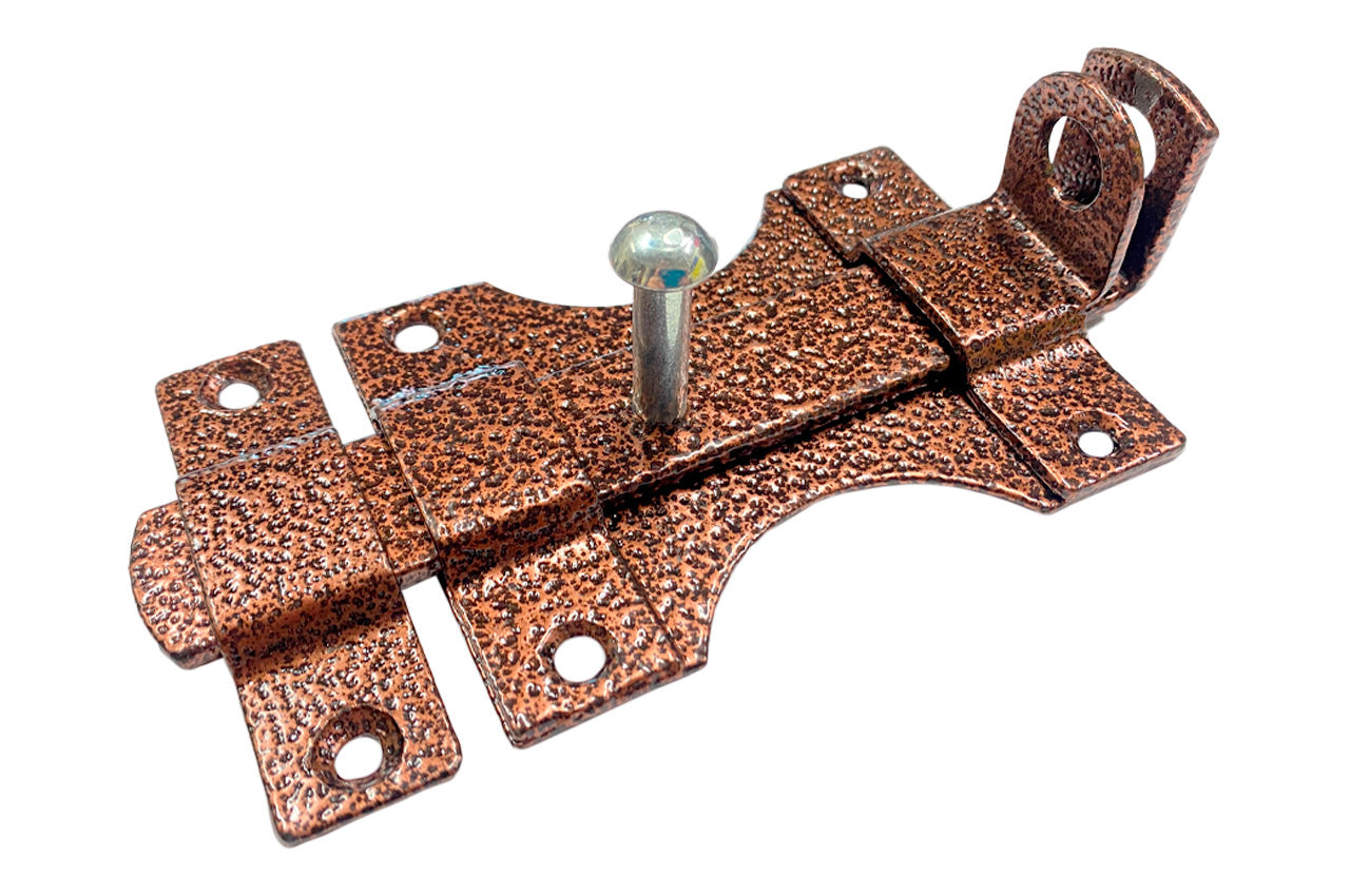 Засов дверной KS-UKR плоский "Дуга" под замок 80х155 (медный антик)