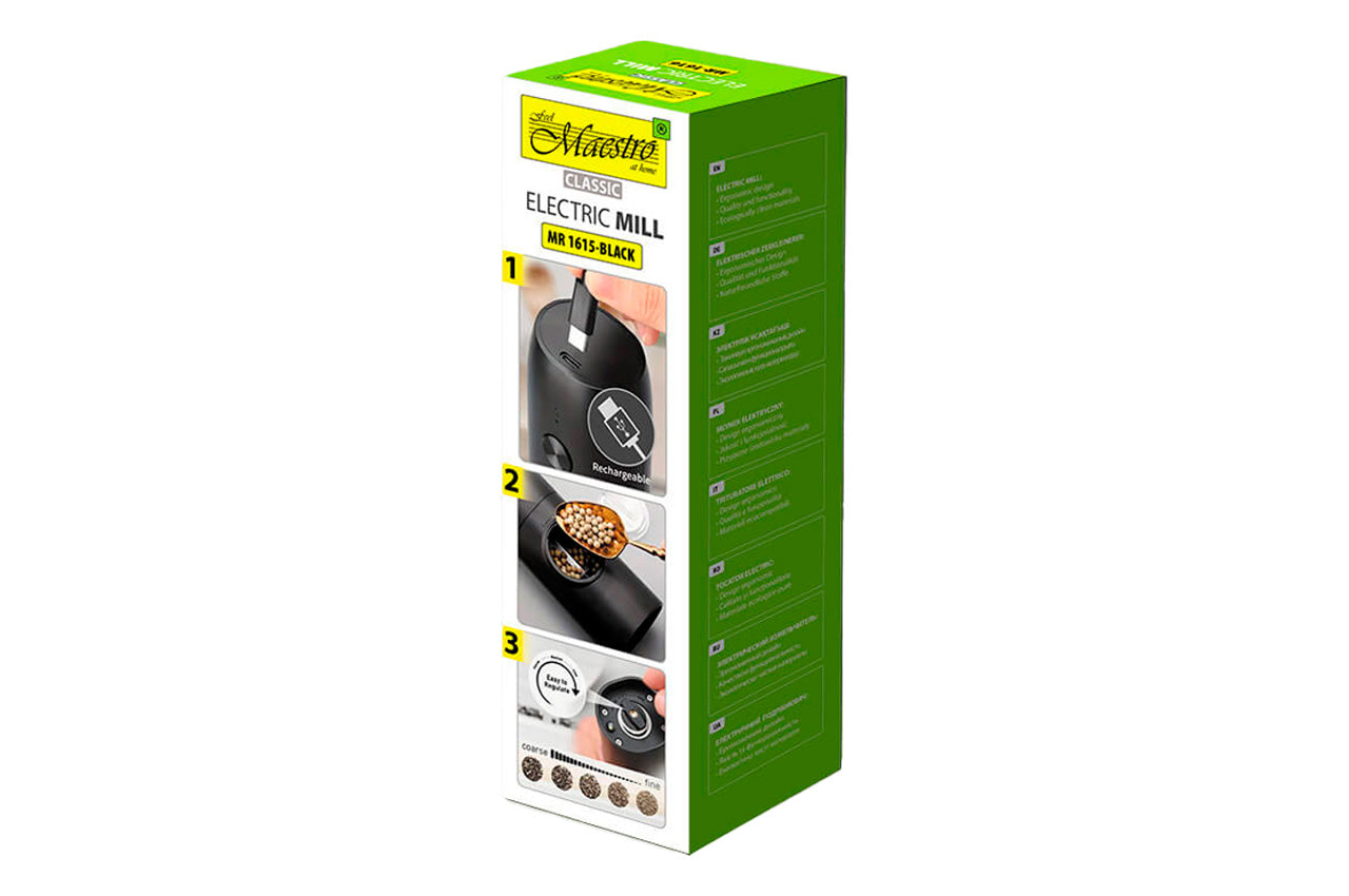 Измельчитель аккумуляторный Maestro – это стильный и функциональный аксессуар для вашей кухни, предназначенный для измельчения соли, перца и других специй. Корпус изготовлен из высококачественного ударопрочного пластика. Объем резервуара составляет 70 г.