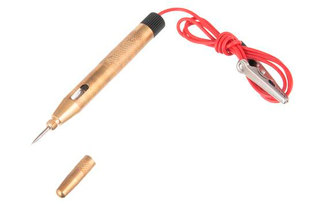 Индикатор напряжения VT-4009 предназначен для проверки наличия напряжения в сети, инструмент позволяет тестировать электрические цепи с напряжением питания от 6В до 24В, что делает его особенно полезным в автомобильном хозяйстве. Металлический корпус обеспечивает высокую износостойкость и долговечность данного индикатора. Небольшой зажим "крокодил" позволит подключить индикатор к "нулю" или "земле" в самых труднодоступных местах. Для наибольшего удобства индикатор напряжения VT-4009 оснащен металлическим колпачком, что позволит без проблем носить его в кармане. Инструкция по применению Снимите защитный колпачок Подсоедините зажим к заземлению или отрицательной клемме аккумулятора Коснитесь кончиком индикатора к металлической части тестируемого устройства, или проткните кончиком изоляцию Если лампочка загорелась, электрическая цепь не нарушена Комплектация: Индикатор напряжения, зажим "крокодил", защитный колпачок.; Напряжение: 6-24 В