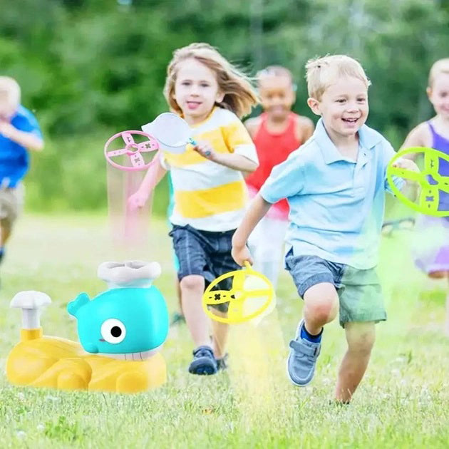 Помещая диск на спину кита и нажимая педаль, вы запускаете игрушку, которая взлетает в воздух. Летающую тарелку можно словить с помощью специального сачка. Существуют различные варианты игры, и вы можете наслаждаться игрой с друзьями и даже с домашними животными. Эта игрушка создает веселую атмосферу на свежем воздухе и способствует развитию командного духа.